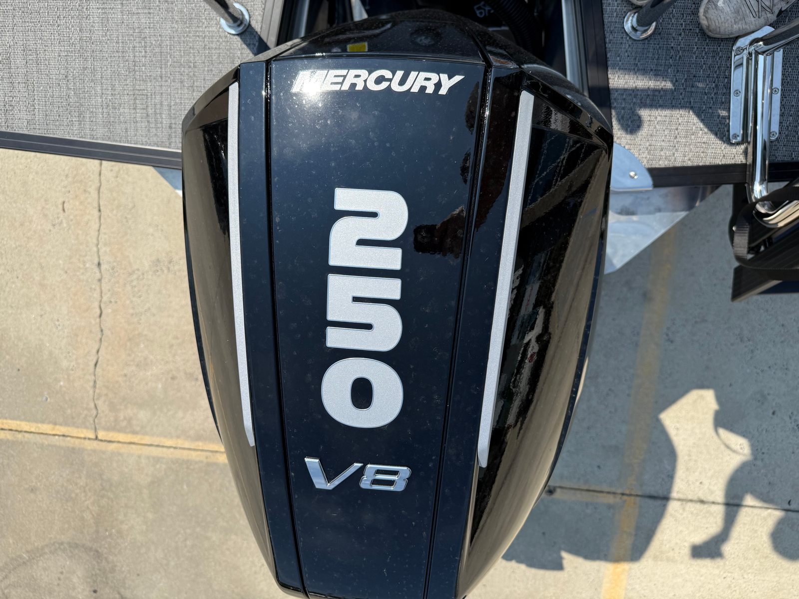 Powering the Barletta Cabrio C24UC is a robust Mercury (M) 250L FourStroke engine, delivering a thrilling 250 horsepower. This single-engine setup is expertly pre-rigged with Mercury mechanical controls and power assist, ensuring smooth and responsive handling whether you’re cruising at a leisurely pace or pushing the throttle for a burst of speed. The stainless steel prop enhances efficiency and durability, while the triple toon package with midship storage provides superior stability and buoyancy, allowing for confident navigation in various water conditions. With this level of performance, you’ll enjoy effortless acceleration, reliable power, and a smooth ride every time you hit the water.