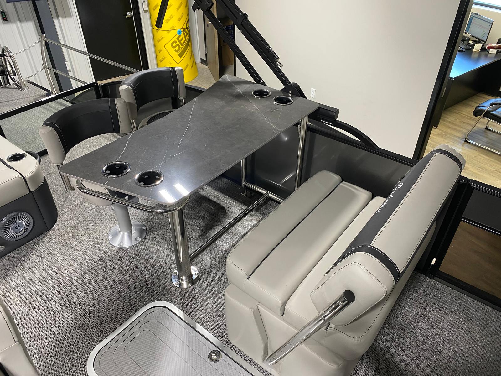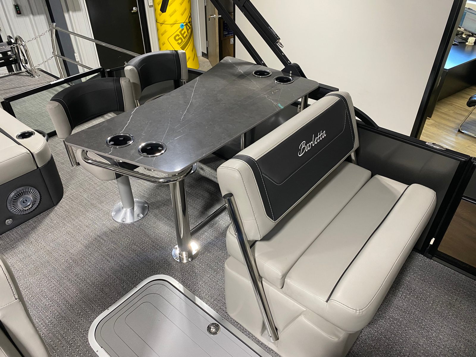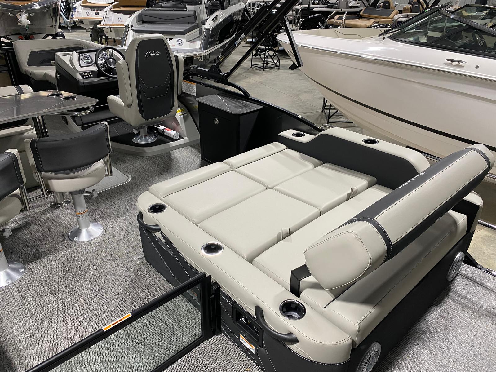 At the heart of the Cabrio C24UE is a powerful Mercury 200L FourStroke engine, delivering 200 horsepower for smooth, responsive handling and exhilarating speed. Whether you’re cruising leisurely or heading out for a day of watersports, this engine provides the perfect balance of efficiency and performance. The Pre-Rig Mercury mechanical system with power assist ensures effortless control, making docking and maneuvering a breeze. With the Triple Toon Package featuring midship storage, this Barletta boat for sale offers enhanced stability and buoyancy, allowing you to glide across the water with confidence and comfort.