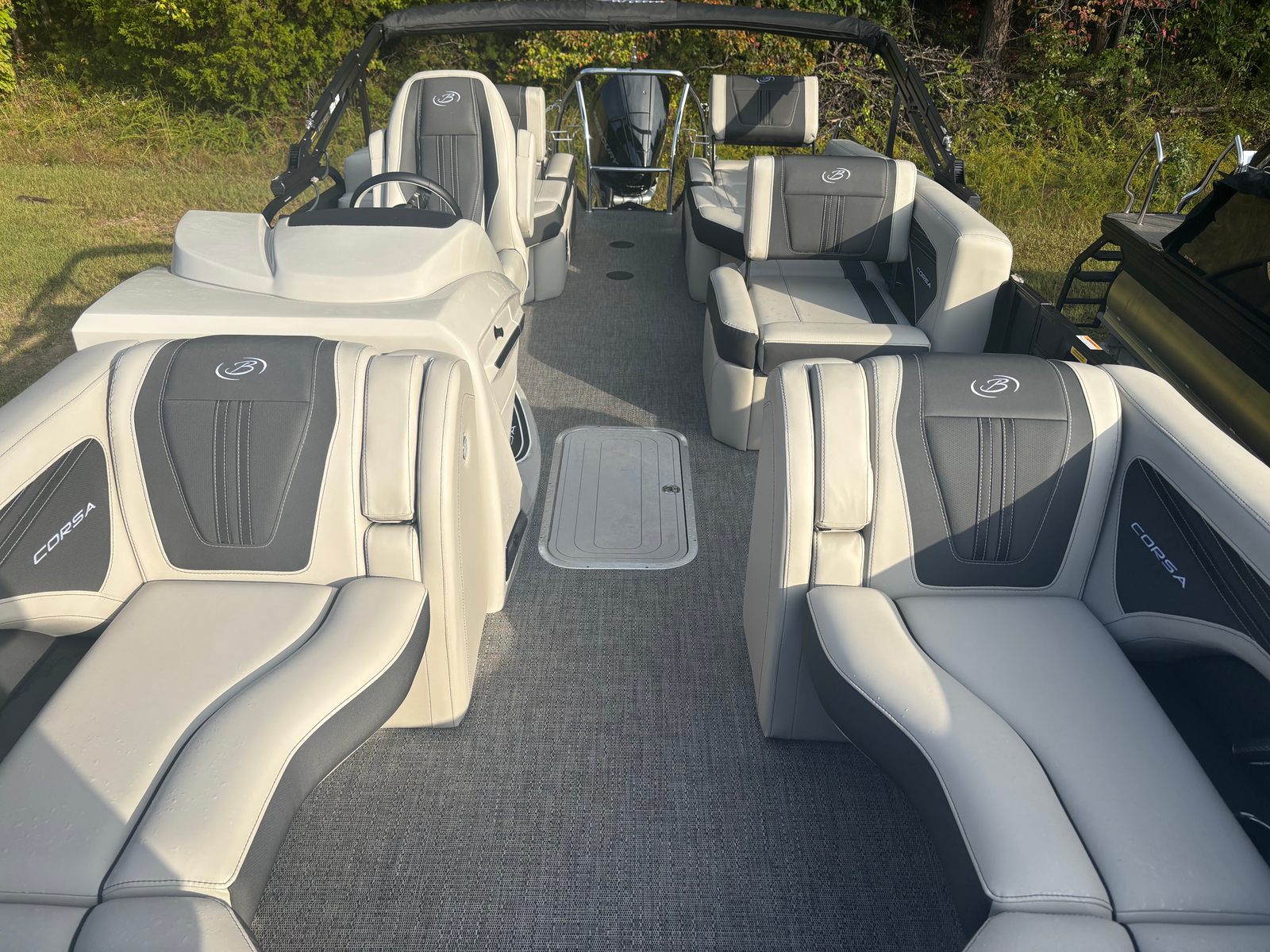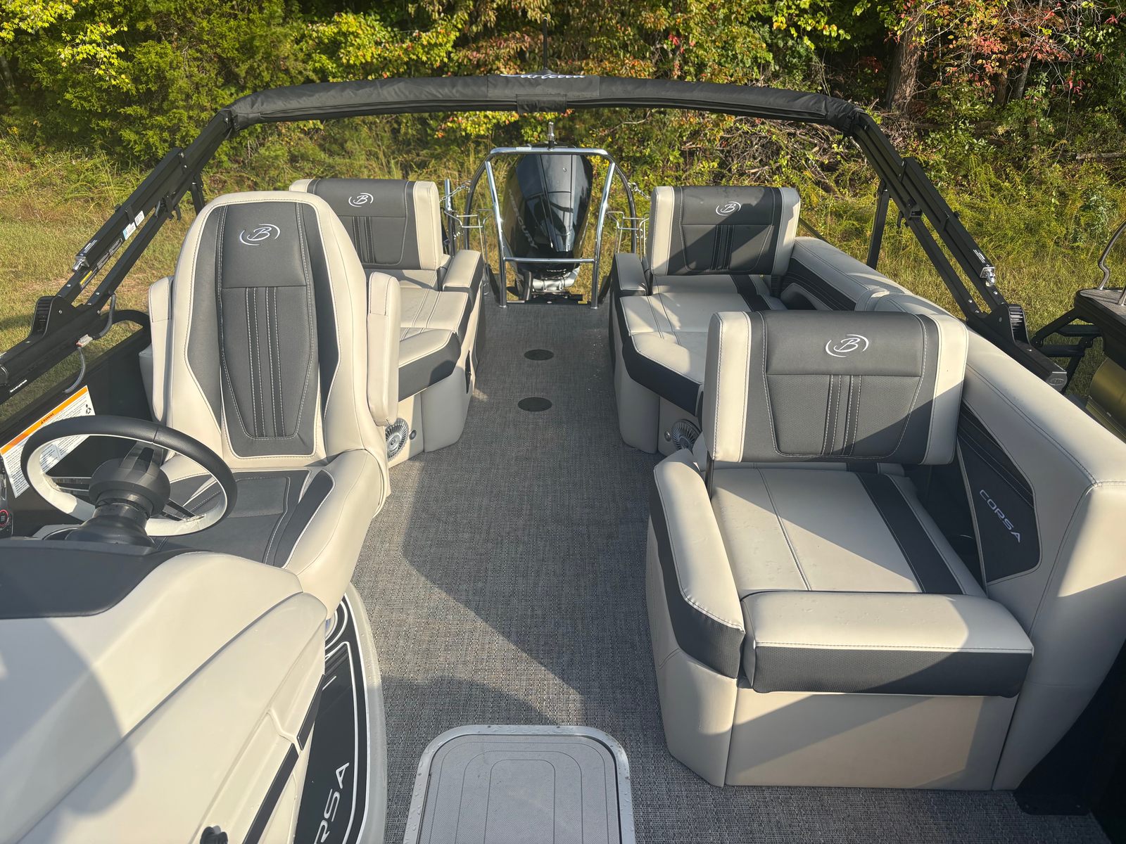 The 2026 Barletta Corsa 23M is a brand-new pontoon boat that measures an impressive 25 feet in length, offering ample space for family, friends, and all your favorite water activities. As a Barletta boat for sale, the Corsa 23M showcases the brand’s commitment to quality craftsmanship, innovative design, and luxurious comfort. Its modern silhouette and attention to detail make it a standout choice for those who appreciate both style and substance in their watercraft.