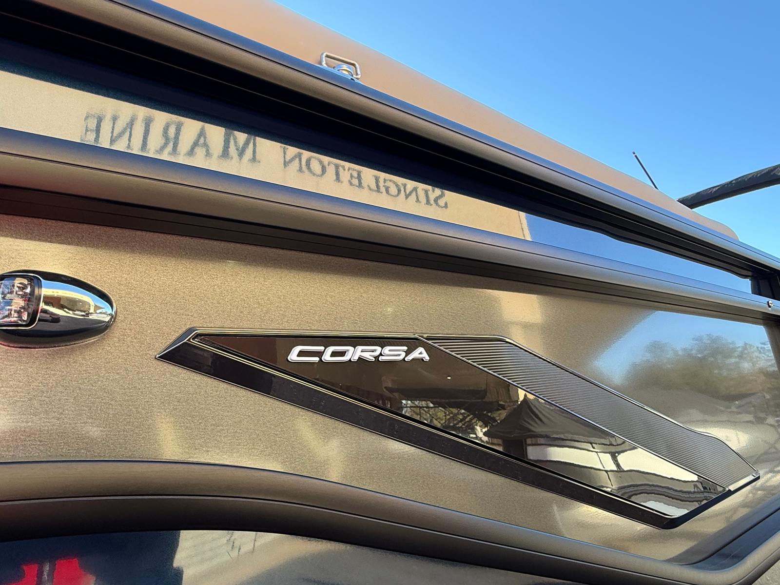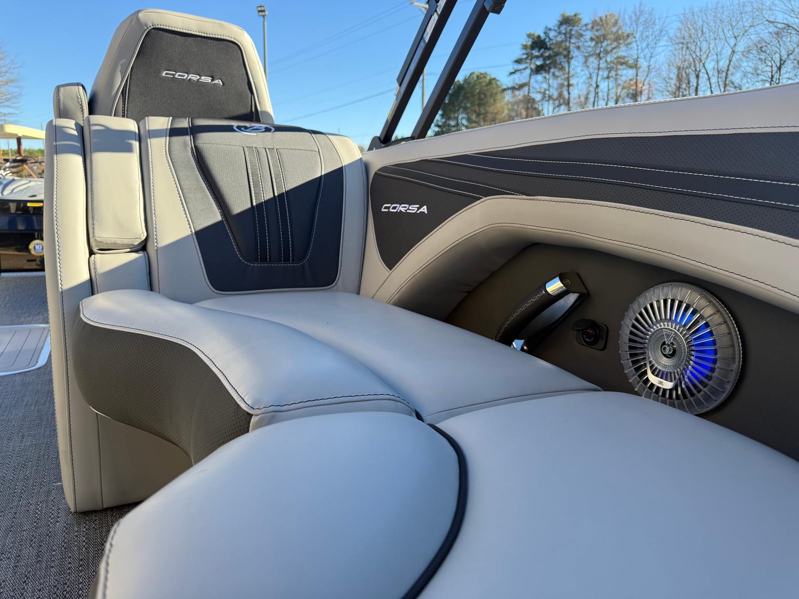 The 2026 Barletta Corsa 23QCSS is a 25-foot pontoon boat that combines modern aesthetics with superior craftsmanship. Its spacious layout provides ample room for entertaining, lounging, and enjoying the open water. The new condition ensures that every detail, from the railskin color to the flooring, is pristine and ready for your next adventure. Whether you’re planning a day of cruising, watersports, or simply soaking up the sun, this Barletta pontoon boat offers the perfect platform for making memories.