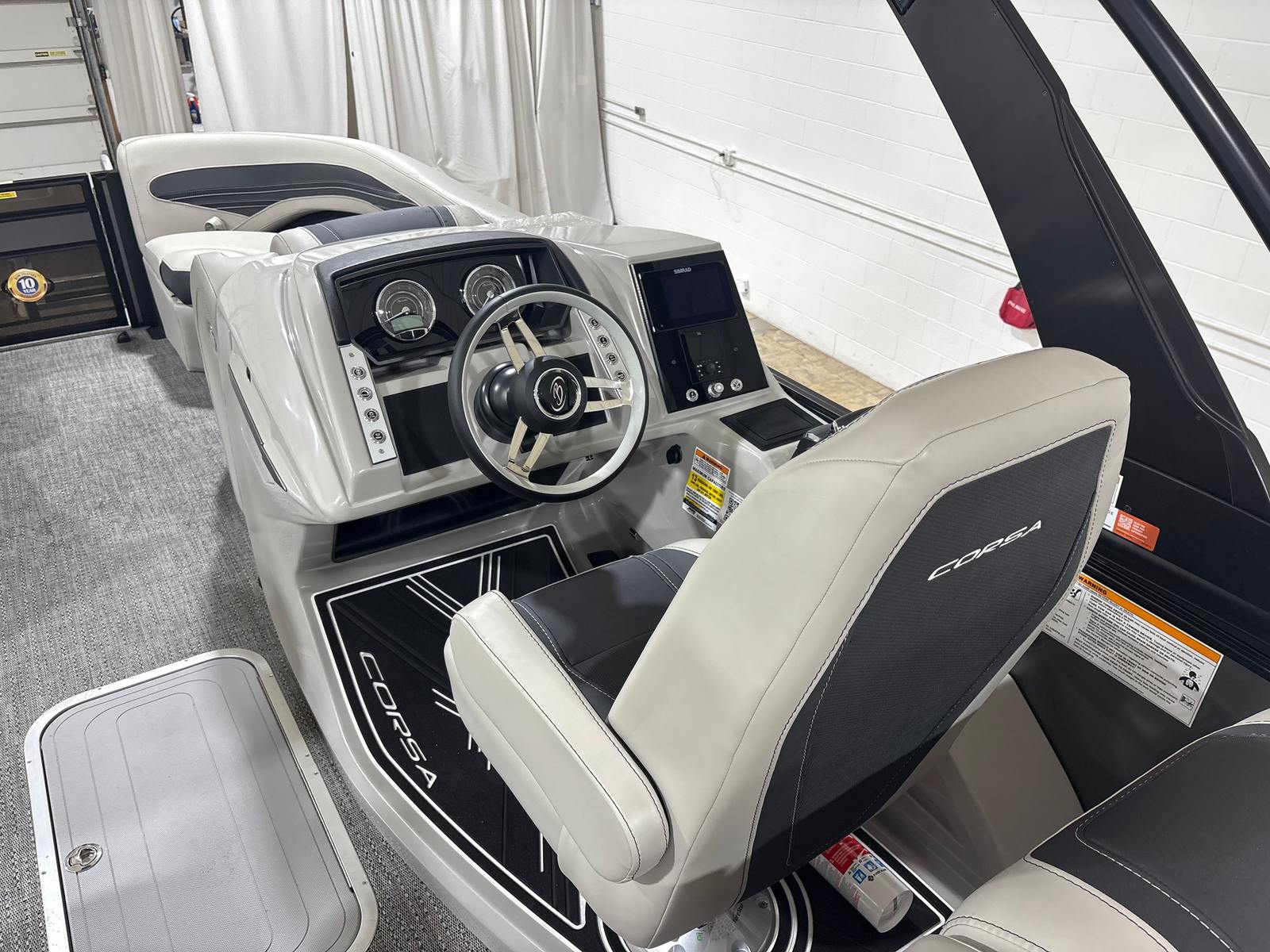 In summary, the 2026 Barletta Corsa 23QCSS pontoon boat for sale is a remarkable fusion of innovation, comfort, and style. With its powerful Mercury engine, advanced steering and digital integration, and luxurious features like the Blackout Package Corsa, soft touch Marquesan Gray furniture, and ambient lighting, this boat is designed to deliver unforgettable moments on the water. The practical benefits, versatile usage scenarios, and striking appearance make it a top choice for anyone seeking a Barletta boat for sale.Don’t miss your chance to own this exceptional pontoon and elevate your boating adventures. Contact the dealer today to learn more about the Barletta Corsa 23QCSS and discover how it can transform your time on the water.