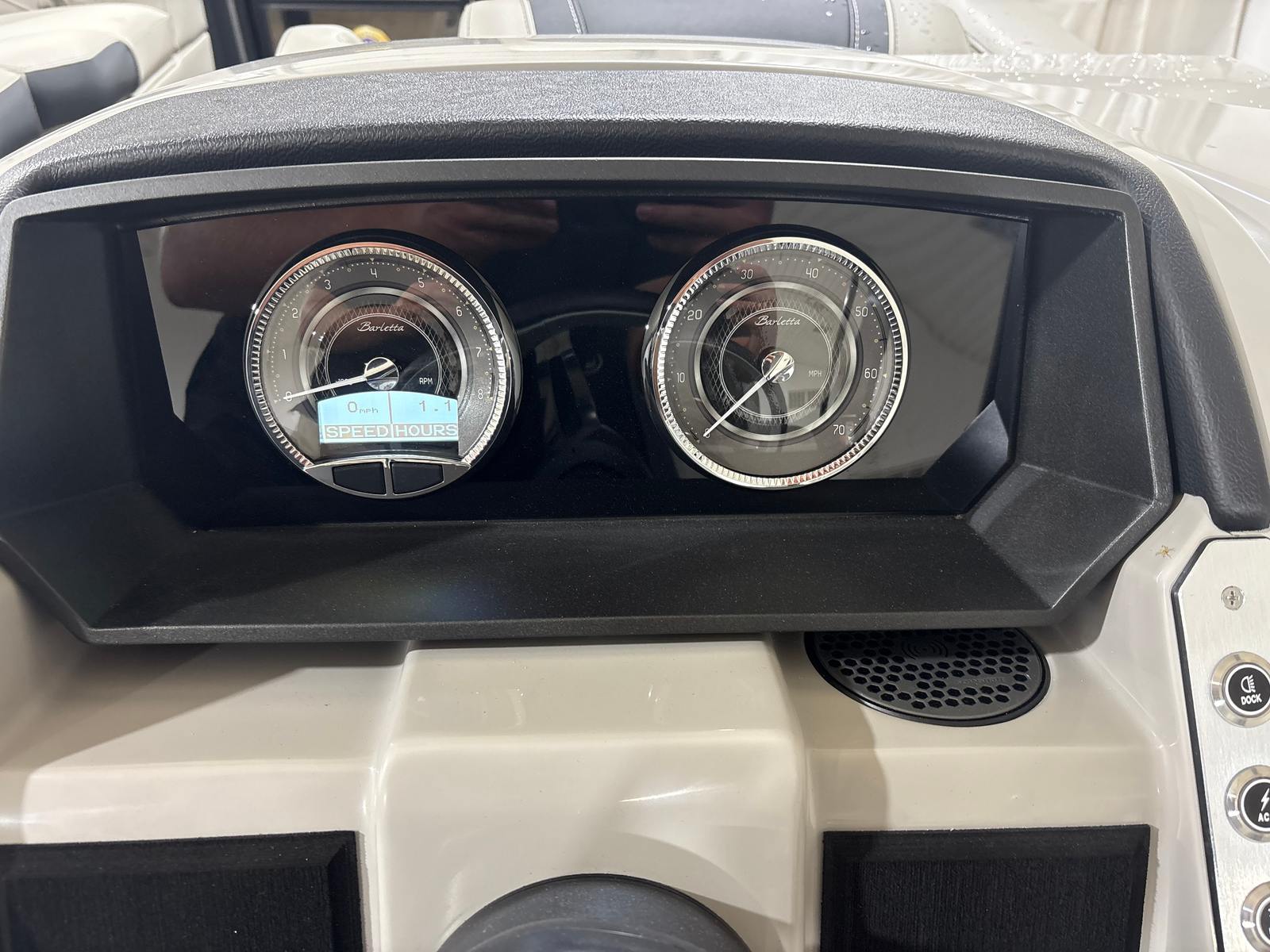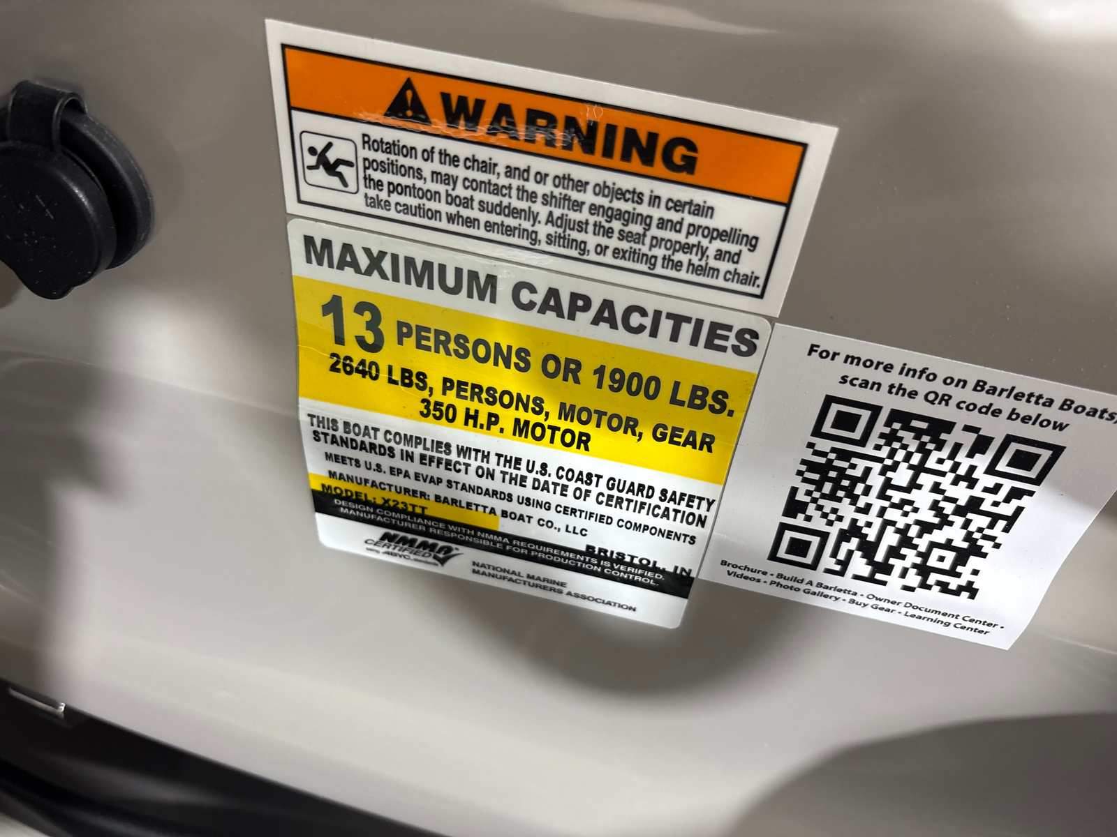 Step aboard the Corsa 23QCSS and discover a host of premium features designed to elevate your boating experience. The Railskin Packages include the striking Blackout Package Corsa, complemented by a matte black color accent and a sophisticated gray moonstone railskin color. The soft touch Marquesan Gray furniture with carbon accent provides plush seating and a modern aesthetic, ensuring comfort for all passengers. Amore Gray flooring adds a touch of elegance and durability, while digital gauges offer clear and accurate information at a glance.Enjoy enhanced visibility and ambiance with white underdeck and underwater exterior lighting, perfect for evening cruises or dockside gatherings. The stainless steel flag pole with American flag adds a patriotic touch, celebrating your love for the water and country. Every detail of the Barletta Corsa 23QCSS has been thoughtfully designed to create an inviting and stylish environment, making it a standout pontoon boat for sale in today’s market.
