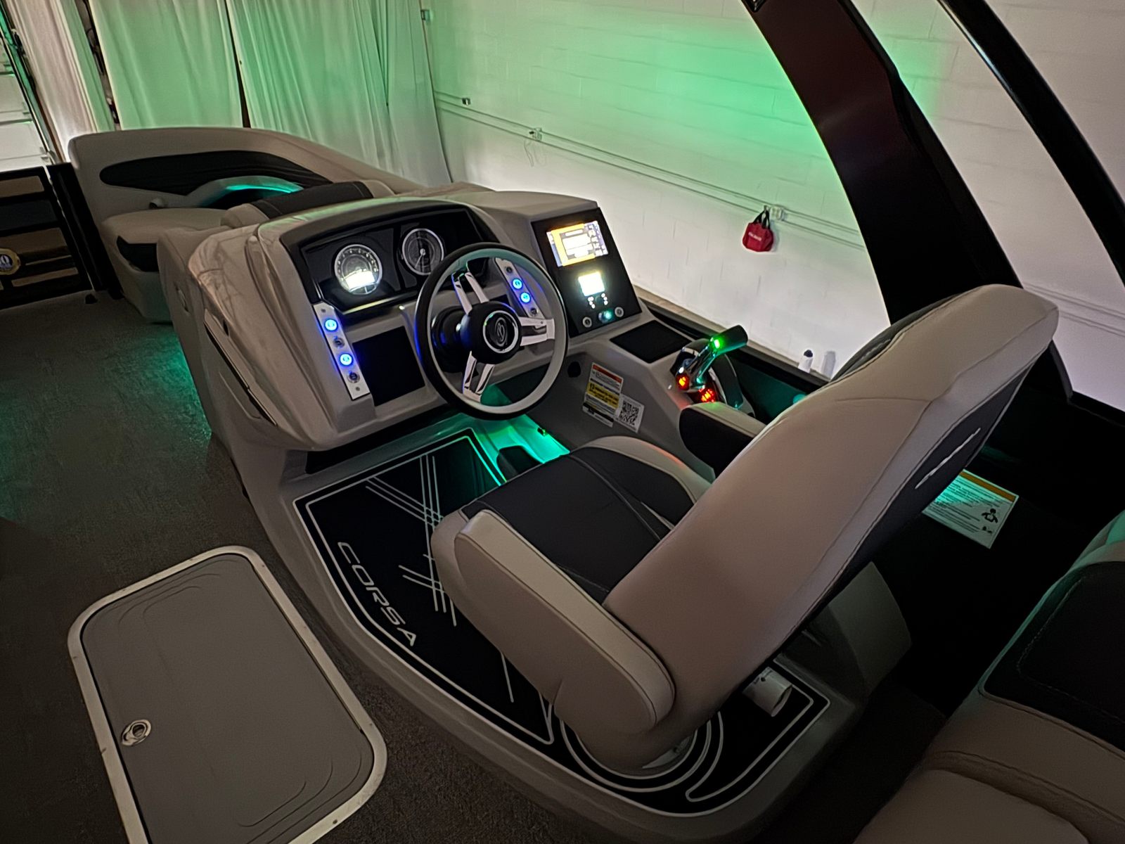 Owning the Barletta Corsa 23QCSS means embracing a lifestyle of fun, relaxation, and connection. The spacious deck layout encourages socializing, whether you’re hosting a lively party or enjoying a quiet afternoon with loved ones. The luxurious seating and premium materials ensure everyone rides in comfort, while the advanced engine and steering systems provide a smooth, enjoyable journey. With its eye-catching design and modern amenities, this Barletta boat for sale is sure to impress guests and create lasting memories.The combination of digital integration and intuitive controls makes boating easier and more enjoyable, allowing you to focus on what matters most – having fun on the water. The ambient lighting sets the perfect mood for evening outings, while the durable flooring and high-quality furniture withstand the rigors of regular use. Every trip aboard the Corsa 23QCSS is an opportunity to unwind, explore, and celebrate life’s special moments.
