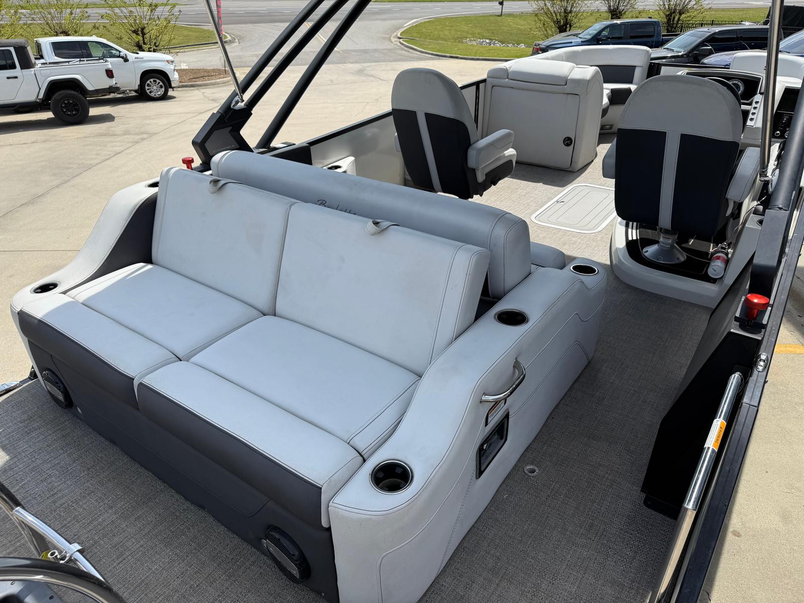 The 2021 Barletta Corsa 23UCA is as practical as it is enjoyable. Its spacious deck offers plenty of storage options for gear, water toys, and personal belongings, keeping the area tidy and organized. The pontoon’s design makes docking and maneuvering straightforward, even for those new to boating. Fuel efficiency is another highlight, allowing you to spend more time on the water and less time at the pump.This used pontoon boat is perfect for a wide range of activities, from leisurely cruises and fishing trips to water sports and family picnics. The sturdy construction and reliable engine mean you can venture out with confidence, knowing that your boat is built to handle whatever the day brings. The Corsa 23UCA’s versatility makes it a smart investment for anyone looking to maximize their time on the water.
