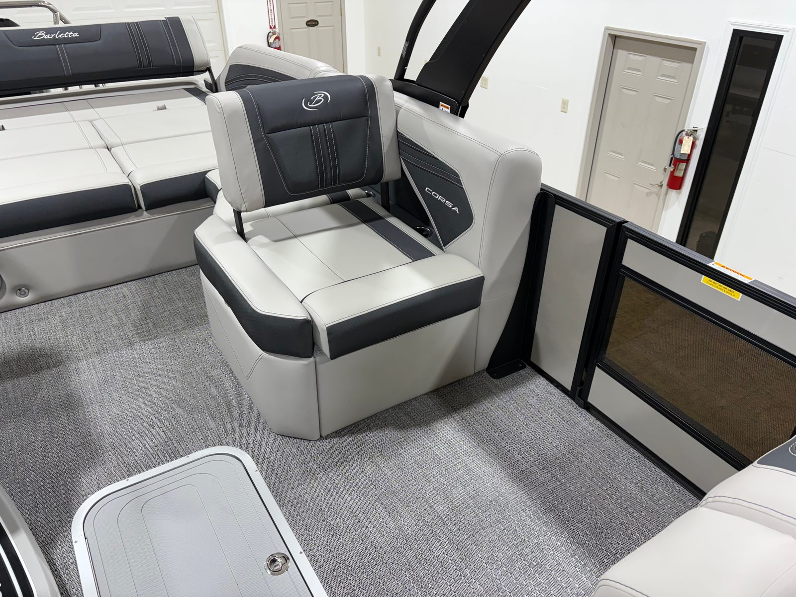 The 2026 Barletta Corsa 25U is a remarkable pontoon boat that brings together power, elegance, and innovation. With its Mercury 250L Verado V8 engine, stunning Railskin color scheme, luxurious Soft Touch Marquesan Gray furniture, and advanced digital controls, this boat is designed to impress both on the water and at the dock. The practical benefits, spacious layout, and versatile design make it an outstanding choice for families, entertainers, and boating enthusiasts alike.If you are in the market for a new pontoon boat for sale that offers unmatched quality and excitement, the Barletta Corsa 25U deserves your attention. Experience the ultimate in comfort, performance, and style—contact your local dealer today to learn more about this exceptional Barletta boat for sale and start your next adventure on the water.