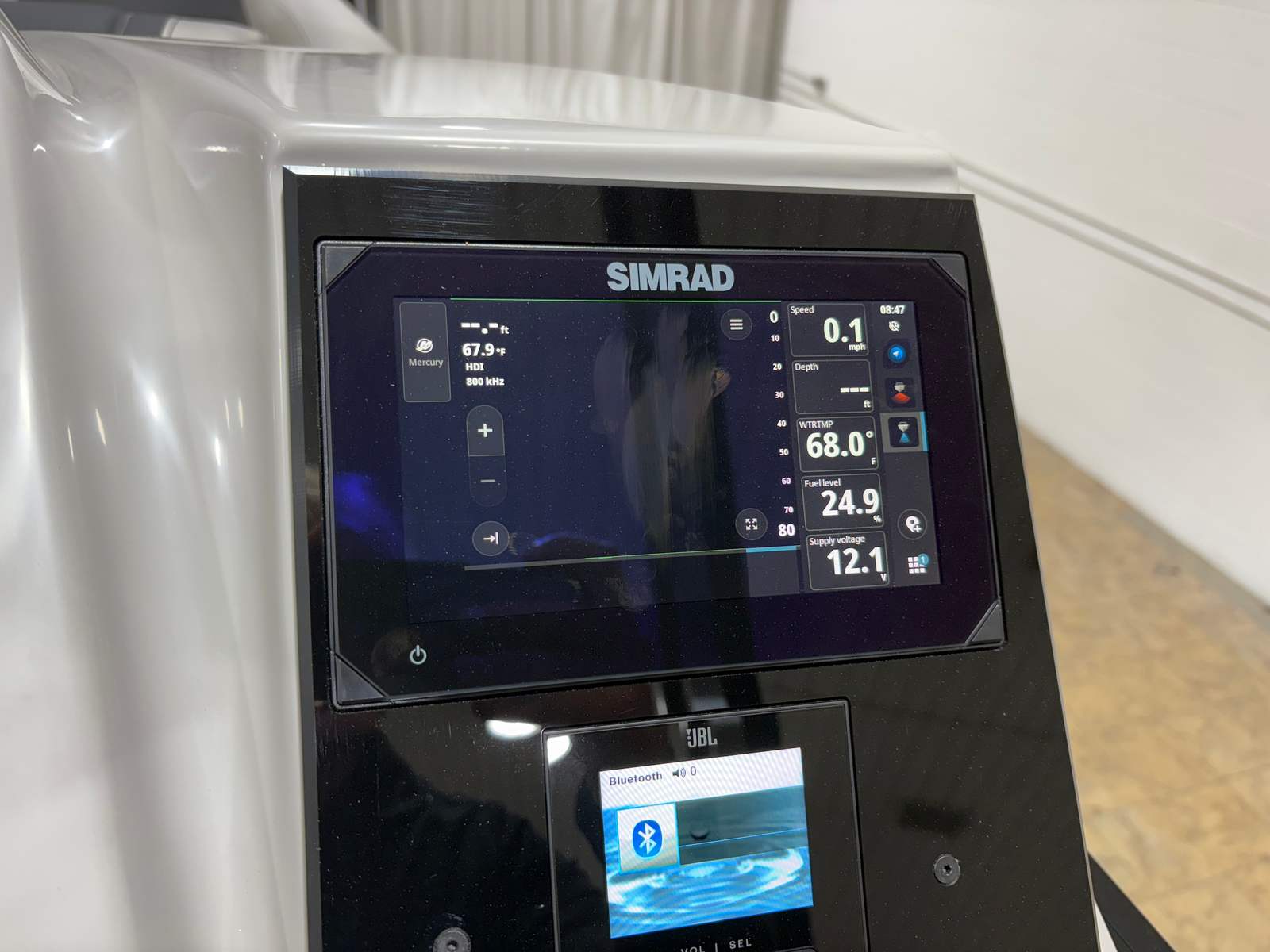 At the heart of the Barletta Corsa 25U is a powerful Mercury 250L Verado V8 engine, delivering an impressive 250 horsepower. This advanced outboard engine is renowned for its smooth acceleration, quiet operation, and remarkable fuel efficiency, ensuring that every outing is both thrilling and economical. The Mercury Digital DTS Pre-Rig for VERADO engines with Vessel Link provides seamless digital throttle and shift control, enhancing responsiveness and precision at the helm. With hydraulic and power assist steering, navigating tight turns and docking becomes effortless, allowing you to focus on enjoying the ride. The stainless steel prop ensures optimal performance and durability, making this pontoon boat for sale a true standout in its class.