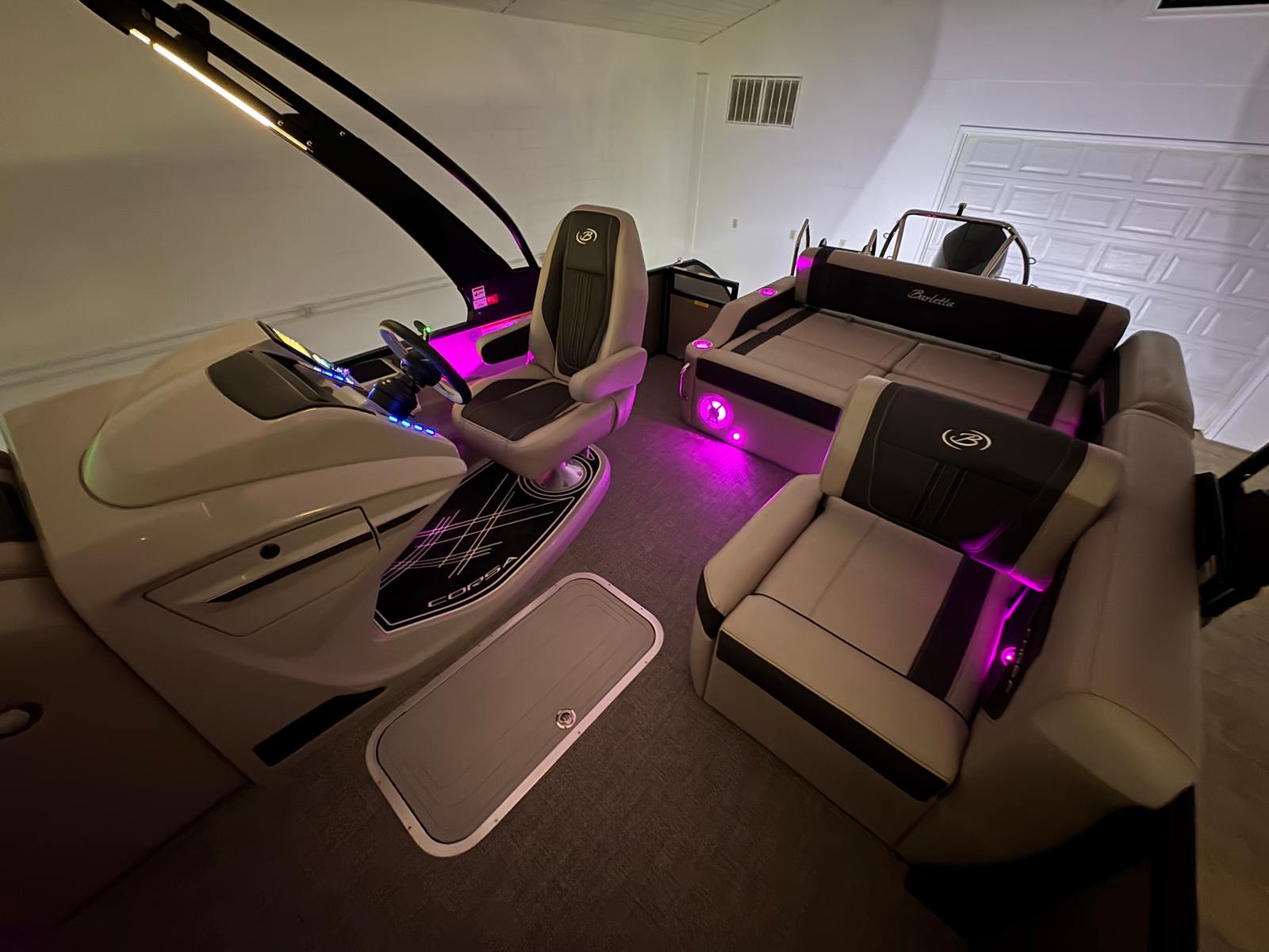 The Barletta Corsa 25U is as practical as it is luxurious. Its generous length provides ample storage for all your gear, from water toys and fishing equipment to picnic supplies and extra towels. The ease of docking, thanks to the hydraulic and power assist steering, means you can confidently navigate marinas and tight spaces, making every trip stress-free. The fuel-efficient Mercury 250L Verado V8 engine allows you to spend more time on the water and less time at the fuel dock, maximizing your enjoyment and minimizing operating costs.The durable flooring and high-quality upholstery are designed to withstand the rigors of active use, ensuring that your pontoon remains in top condition for years to come. The sport bimini provides essential shade on hot days, while the stainless steel flag pole with American flag adds a touch of pride and personality to your vessel.