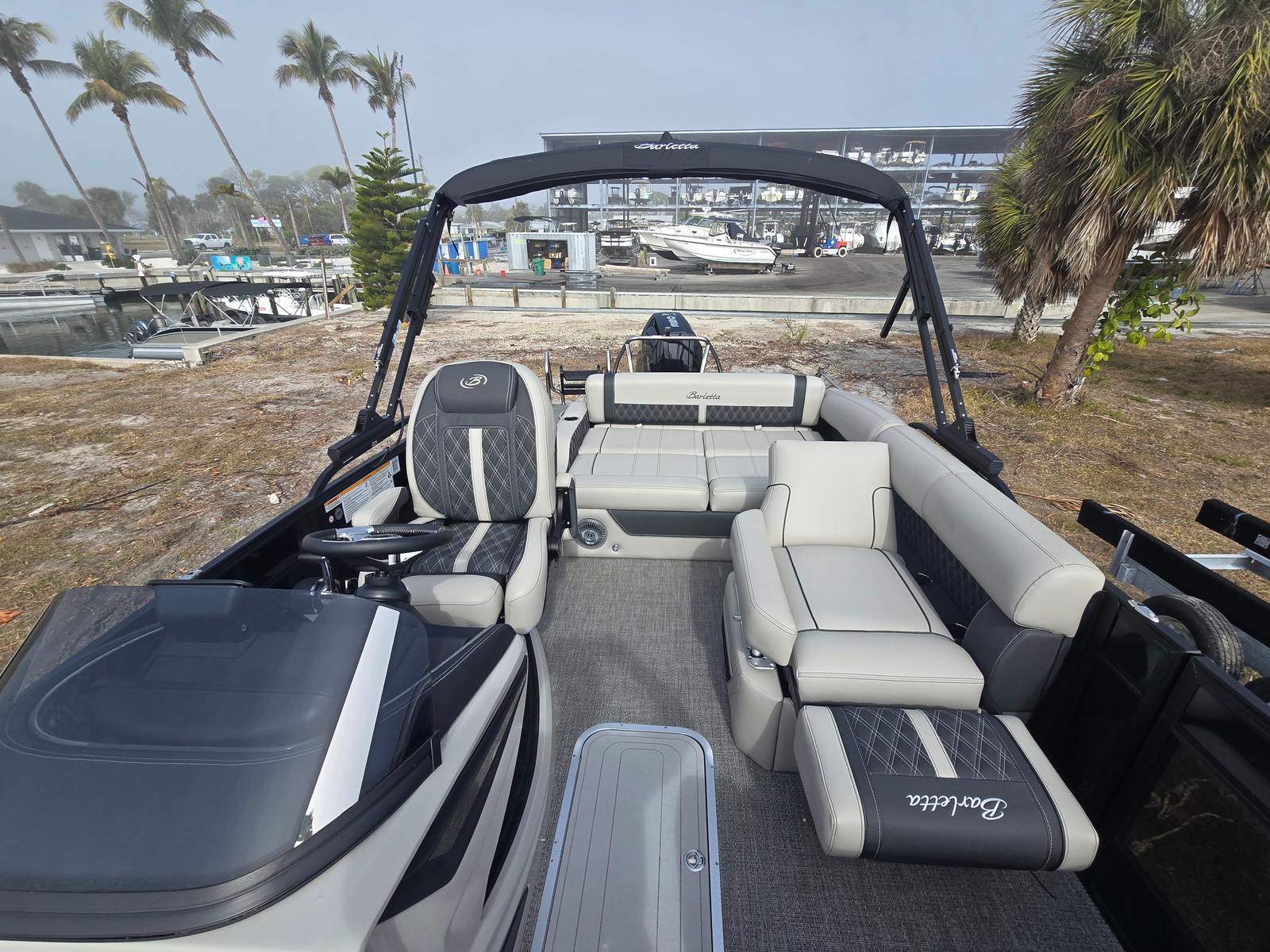 The Barletta Lusso L23U is packed with features that elevate your boating experience to new heights. Its spacious deck layout provides plenty of seating options, perfect for socializing, sunbathing, or enjoying a meal with loved ones. The high-quality upholstery and ergonomic design ensure maximum comfort throughout your journey. Innovative storage solutions are integrated throughout the boat, making it easy to stow away gear, water toys, and personal items without sacrificing space or style.Advanced technology is seamlessly woven into the Lusso L23U’s design, offering intuitive controls and modern conveniences that enhance safety and enjoyment. The pontoon’s sturdy construction and premium materials guarantee longevity and durability, so you can make memories for years to come. Every aspect of this Barletta boat for sale is engineered to provide a superior on-water experience, from its smooth ride to its luxurious finishes.