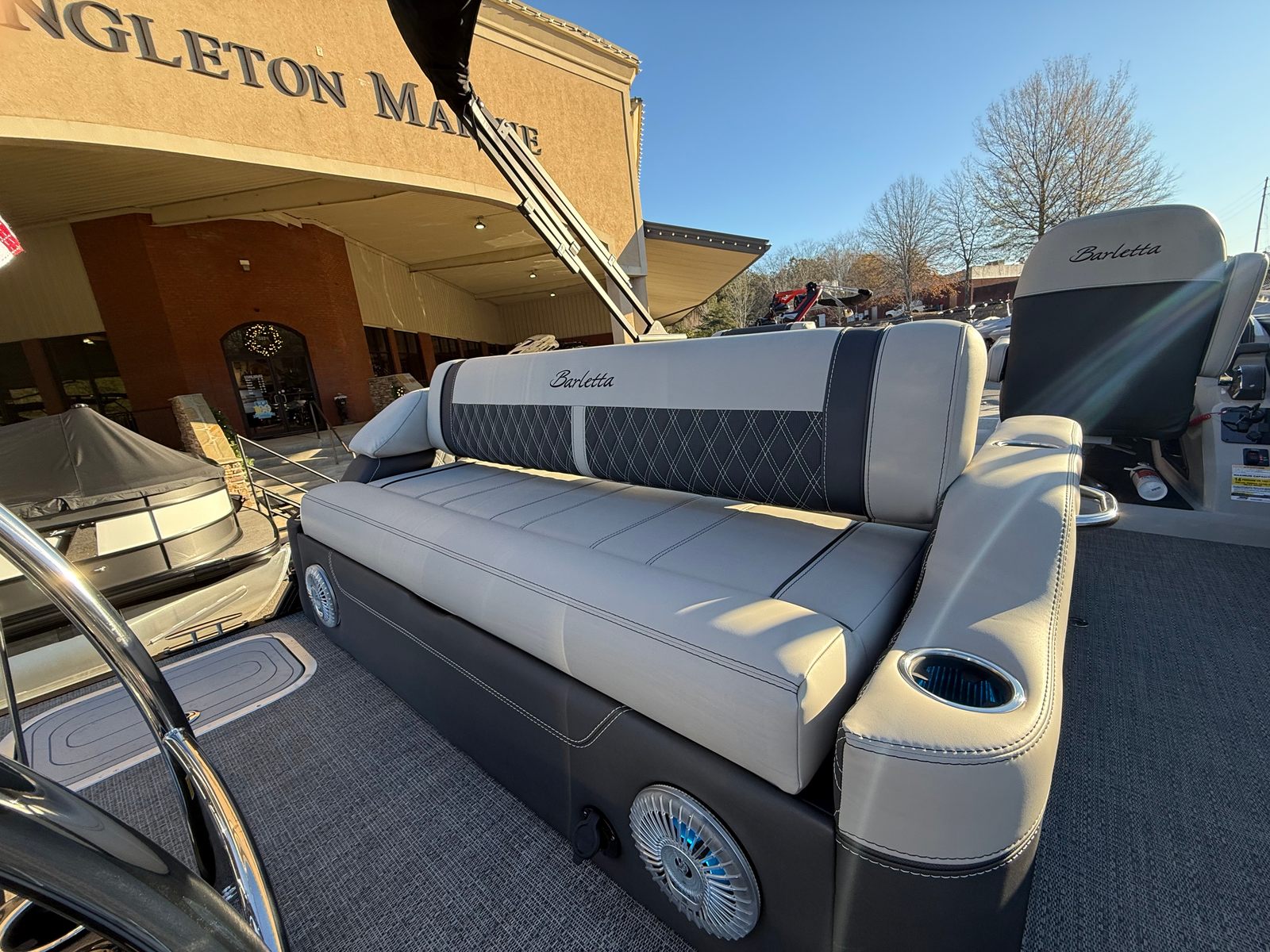 Whether you’re planning a lively family outing, a relaxing day of fishing, or a luxurious getaway with friends, the Barletta Lusso L23U is the perfect companion. Its spacious design and comfortable seating make it ideal for socializing, sunbathing, or enjoying a picnic on the water. The powerful engine and responsive steering open up opportunities for water sports and exploration, while the elegant lighting sets the mood for evening cruises.Imagine hosting a sunset party with the Lusso L23U’s stylish exterior lighting illuminating the deck, or spending a quiet morning fishing from the comfort of its plush seats. This pontoon boat adapts to your lifestyle, offering versatility and enjoyment for every occasion. With its premium features and exceptional performance, the Lusso L23U stands out as a top choice for anyone seeking a Barletta boat for sale.