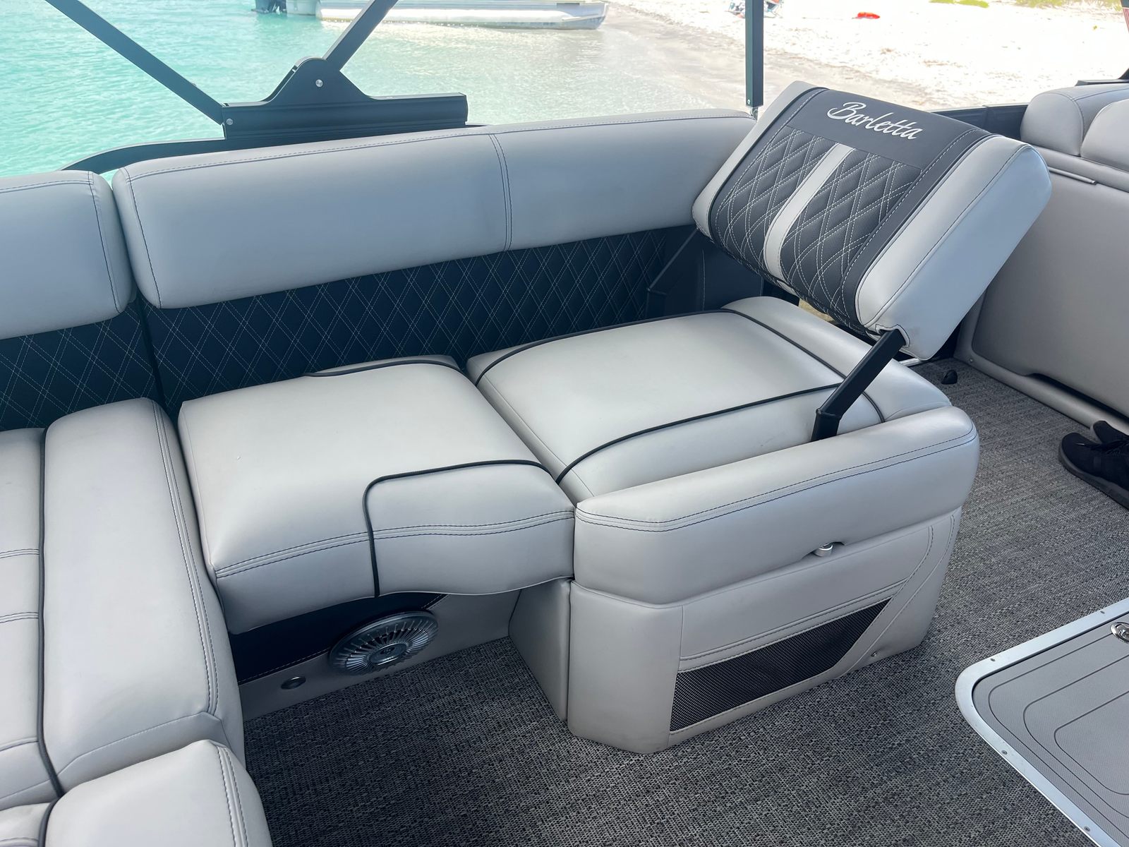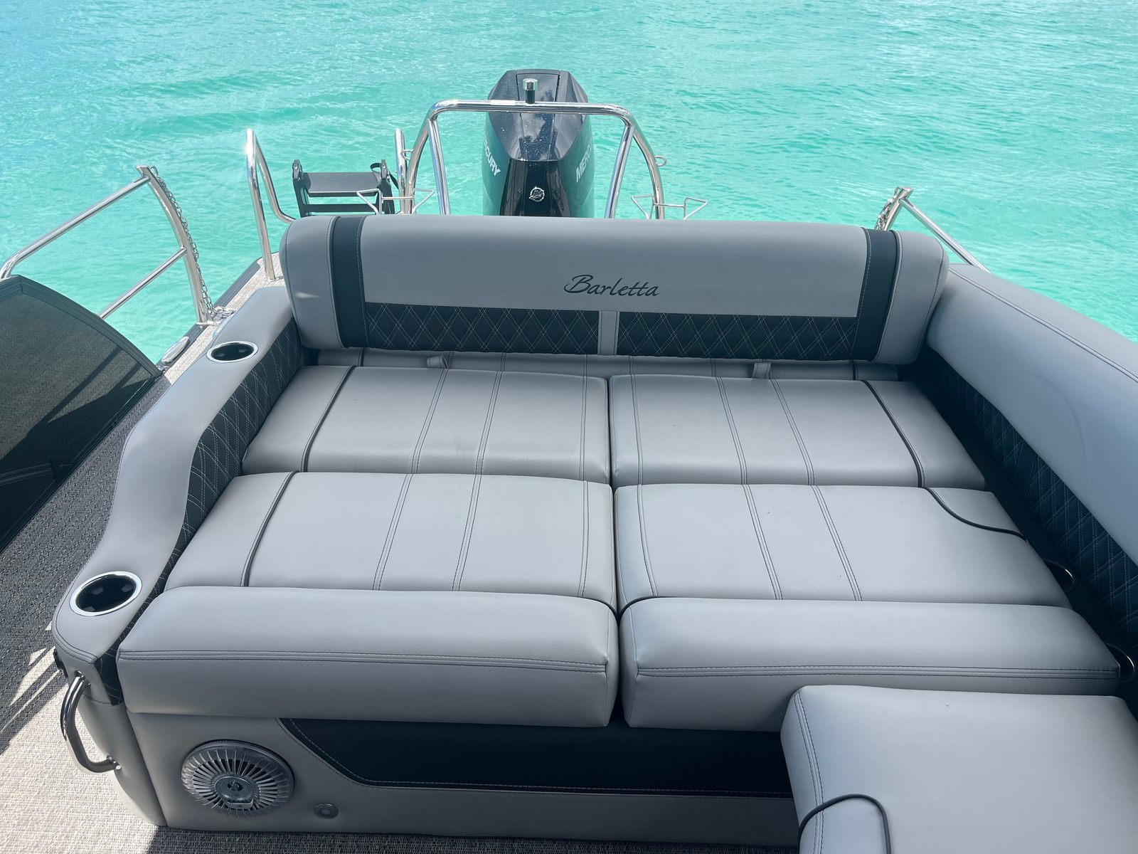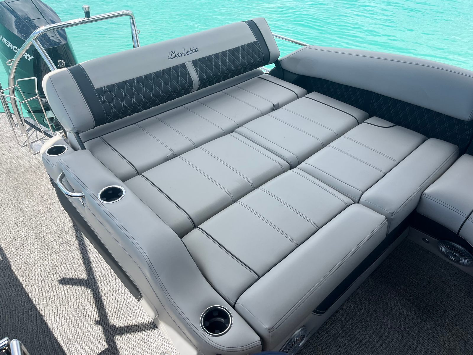 Owning the Barletta Lusso L23U means embracing a lifestyle of fun, relaxation, and connection. The spacious deck layout encourages socializing, whether you are hosting a lively gathering or enjoying a quiet sunset cruise. The luxurious seating and ample room make it easy for everyone to find their perfect spot, while the double bimini system ensures you can stay cool and comfortable even on the sunniest days. The Lusso L23U’s powerful engine opens up a world of possibilities, from leisurely cruises to thrilling water sports, all with the confidence of Barletta’s renowned build quality.