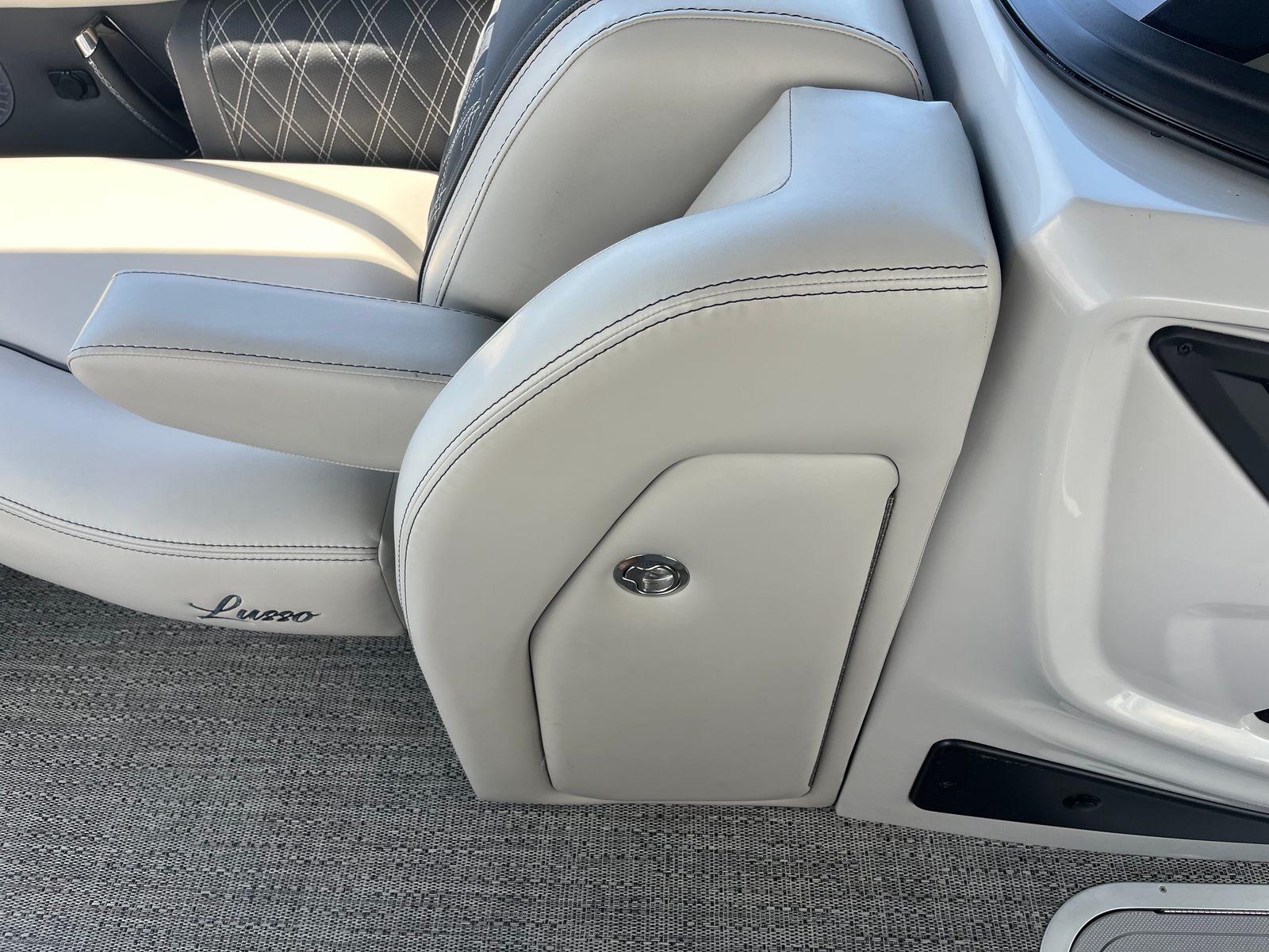 Power and precision come together in the Barletta Lusso L23U, thanks to its robust Mercury (D) 350L V10 Verado engine. With a commanding 350 horsepower at your fingertips, this pontoon delivers exhilarating acceleration and smooth cruising, making it ideal for a variety of water activities. The Mercury Digital Pre-Rig for V10 and the expertly rigged engine with V10 prop ensure optimal performance, responsiveness, and efficiency. Whether you are gliding across calm waters or picking up speed for watersports, the Lusso L23U’s advanced propulsion system provides a seamless and enjoyable ride.