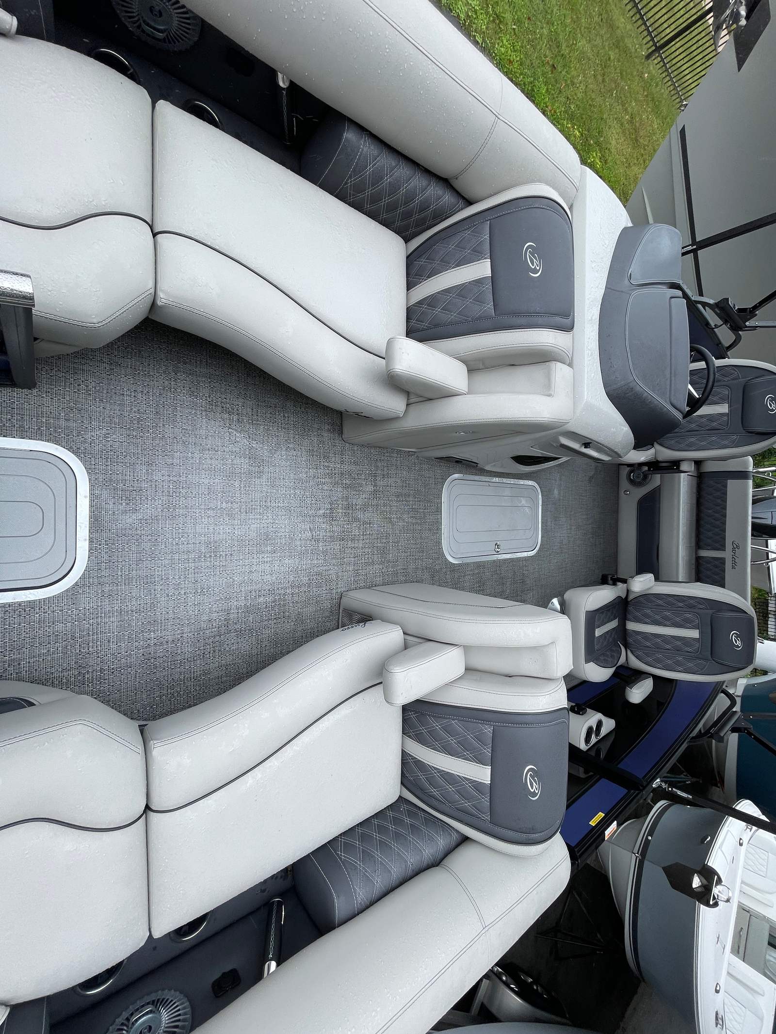 Beyond its recreational appeal, the Barletta Lusso L23UC offers practical benefits that make ownership a breeze. The generous deck space provides plenty of room for storing gear, coolers, and water toys, so you’re always prepared for a day of adventure. The boat’s layout is designed for easy movement and accessibility, making docking and boarding simple and stress-free.Fuel efficiency is another advantage of this pontoon boat, allowing you to spend more time on the water and less time refueling. The Lusso L23UC’s reliable engine and sturdy construction mean you can count on it for years of trouble-free operation, minimizing maintenance and maximizing enjoyment. Whether you’re planning a quick outing or an extended trip, this Barletta boat for sale offers the versatility and convenience you need to make the most of your boating lifestyle.