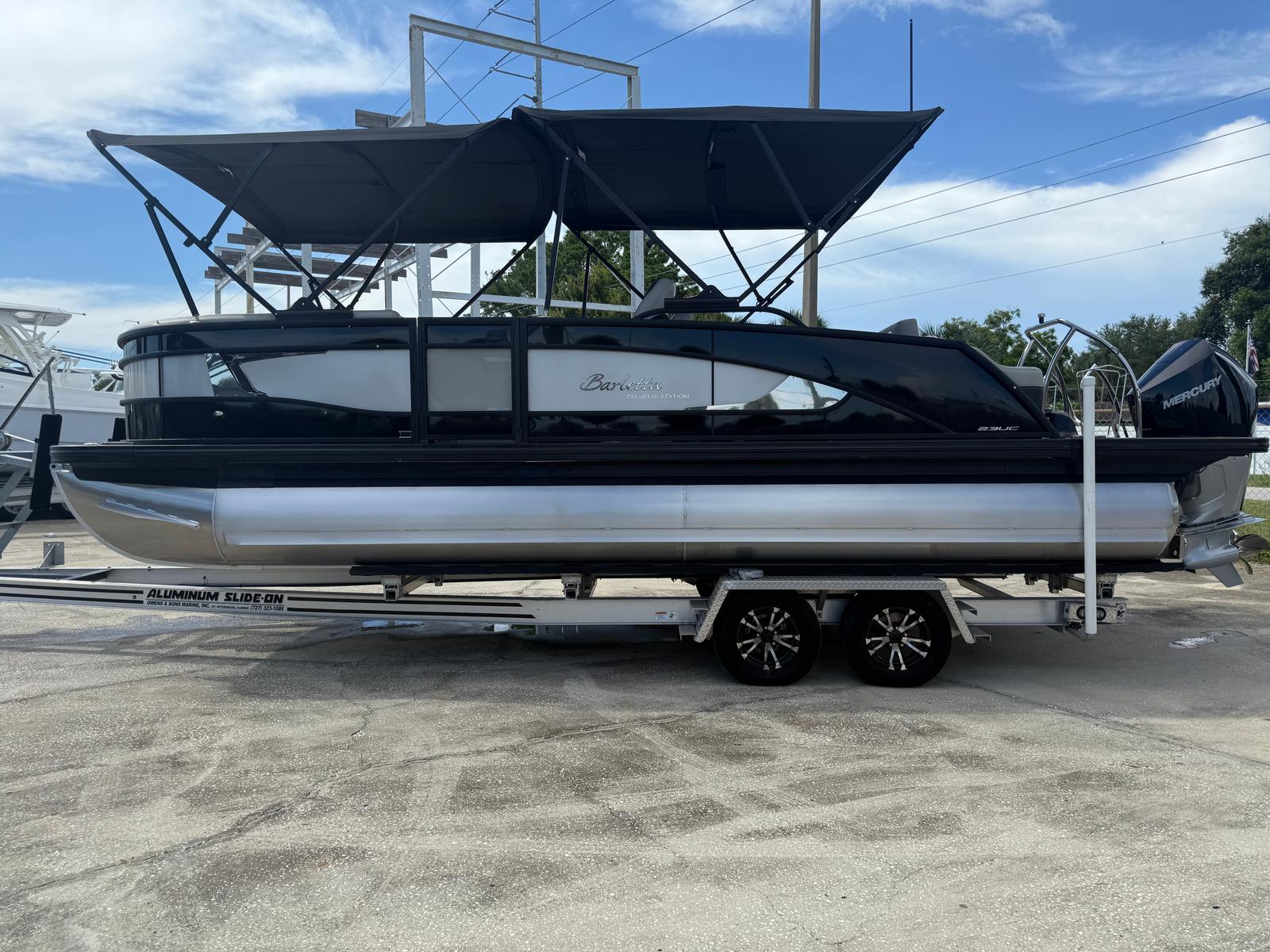 In summary, the 2026 Barletta Lusso L23UC Pontoon is a standout option for anyone seeking a pontoon boat for sale that delivers on every front. With its powerful Mercury Verado V8 engine, advanced steering and digital systems, luxurious Marquesan Gray/Onyx furniture, Amore Gray flooring, and exclusive Coastal Edition Lusso features, this Barletta boat for sale offers an unparalleled boating experience. The striking Black Diamond and Champagne color scheme, Blackout Package Lusso, and double bimini setup further enhance its appeal, making it a true masterpiece on the water.Don’t miss your chance to own this exceptional pontoon boat. Experience the perfect blend of luxury, performance, and versatility with the Barletta Lusso L23UC. Contact your local dealer today to learn more and take the first step toward unforgettable adventures on the water.