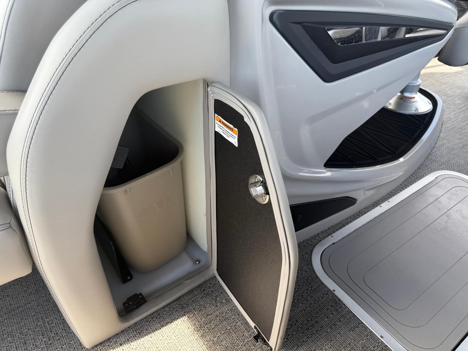 Powering this exceptional pontoon is a single Mercury (D) 300L Verado V8 engine, delivering a robust 300 horsepower for exhilarating acceleration and impressive cruising speeds. The Mercury Digital DTS Pre-Rig for VERADO engines with Vessel Link ensures seamless integration and precise control, while hydraulic and power assist steering make handling effortless, even in challenging conditions. With digital gauges providing real-time performance data, you’ll always be in command, whether you’re gliding across calm waters or navigating busy waterways. The rig engine features a stainless steel prop, optimizing efficiency and durability for long-lasting enjoyment.