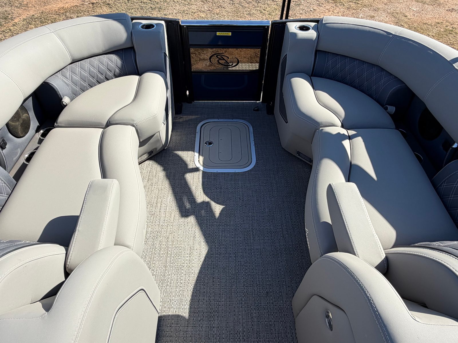Powered by a robust 350-horsepower engine, the Barletta Lusso L23UC delivers exhilarating performance on the water. With just 30 engine hours, this pontoon boat is barely broken in, ensuring reliability and longevity for seasons to come. The powerful engine provides smooth acceleration and impressive top speeds, making it ideal for water sports, cruising, or simply enjoying a leisurely ride. The Lusso L23UC’s advanced engineering ensures responsive handling and a stable ride, even when navigating choppy waters or making tight turns. Whether you’re towing a tube, heading to your favorite cove, or simply enjoying a sunset cruise, this Barletta boat for sale offers the performance you need for any adventure.