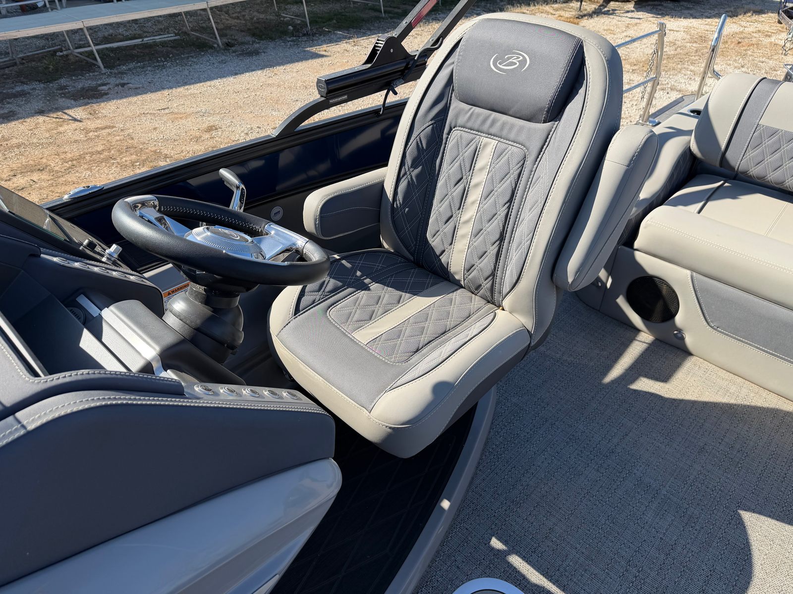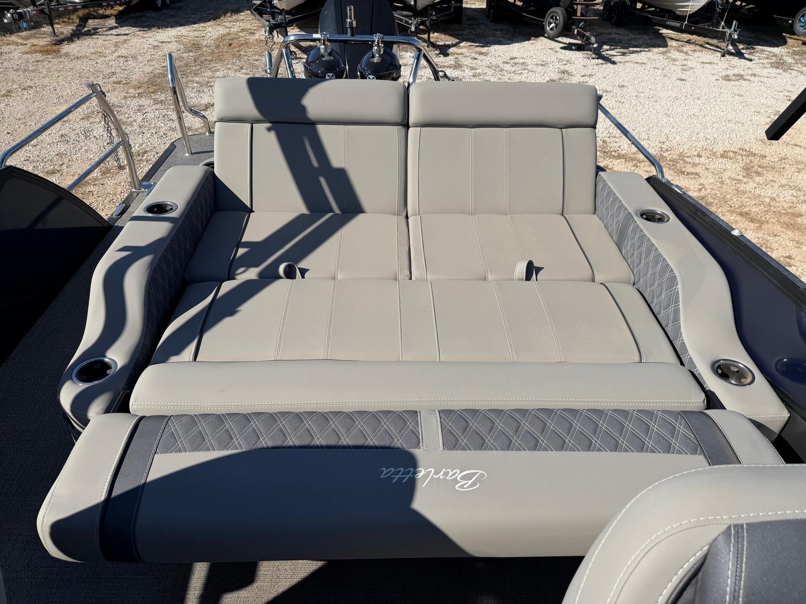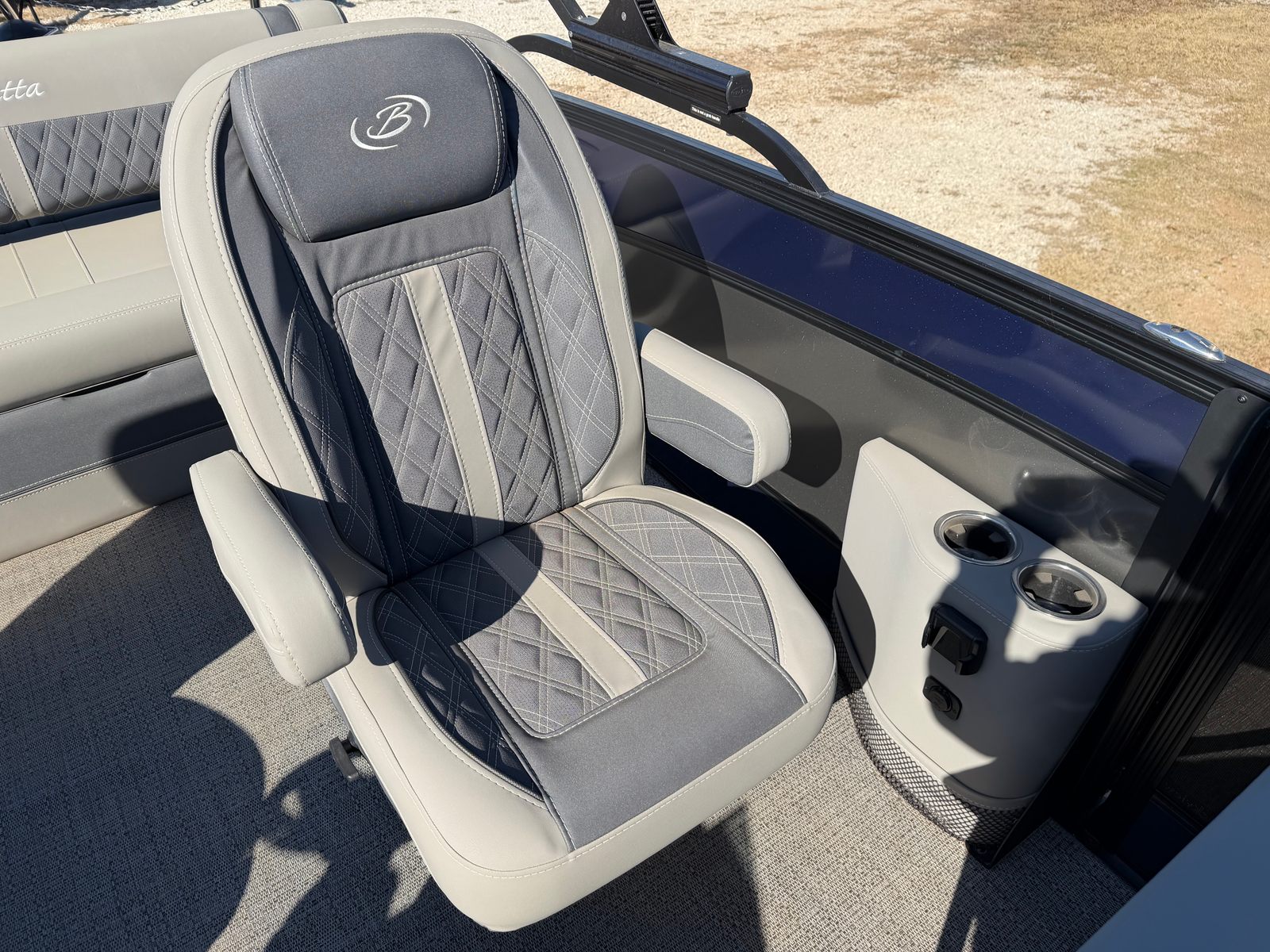 The 2024 Barletta Lusso L23UC is designed with both comfort and convenience in mind. Its spacious 25.42-foot deck provides ample room for guests to relax, socialize, and enjoy the scenery. The open layout is perfect for entertaining, with plush seating and thoughtfully placed amenities that enhance every outing. Special features of the Lusso L23UC include high-quality upholstery, a stylish helm, and a user-friendly control panel that puts everything you need at your fingertips. The pontoon’s sturdy construction and premium materials ensure durability and a smooth ride, while the elegant design details set it apart from other pontoon boats for sale.