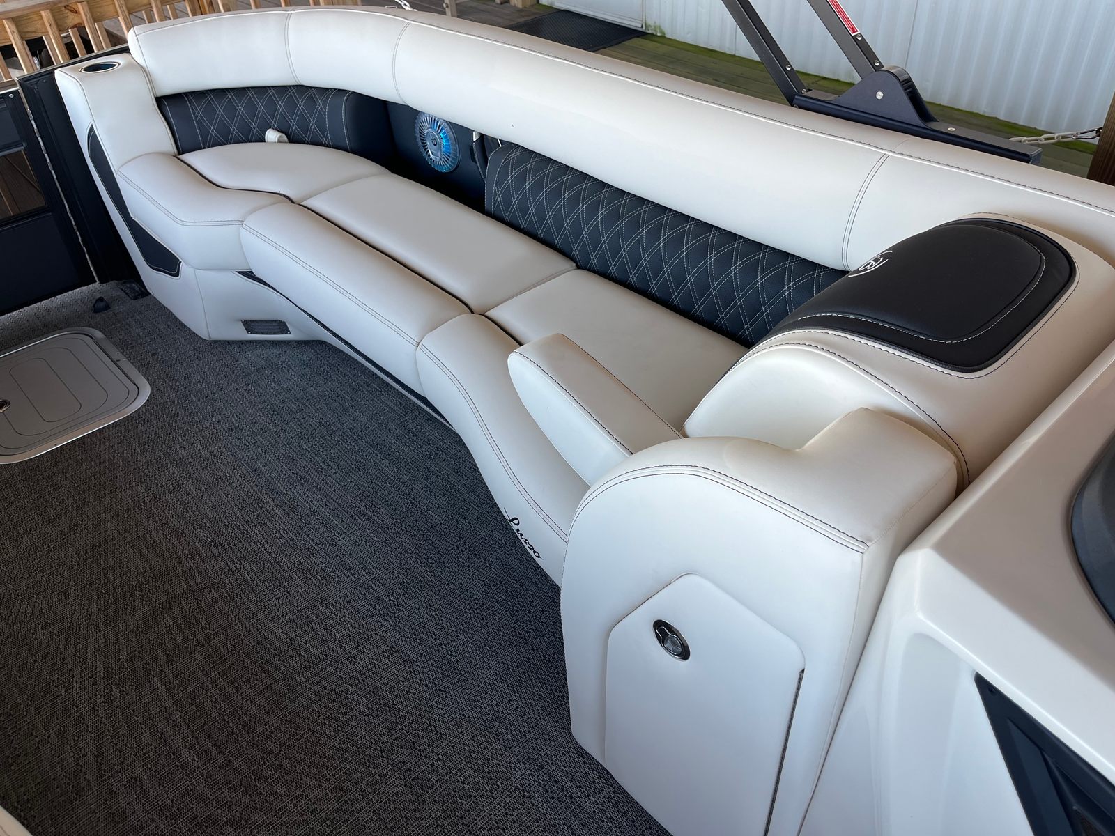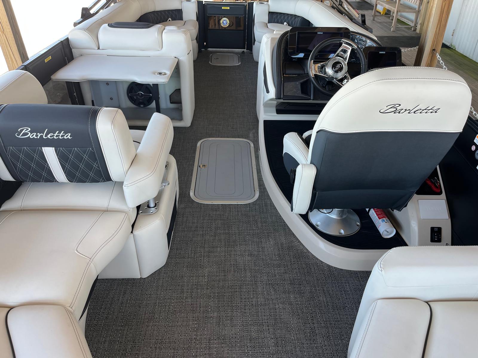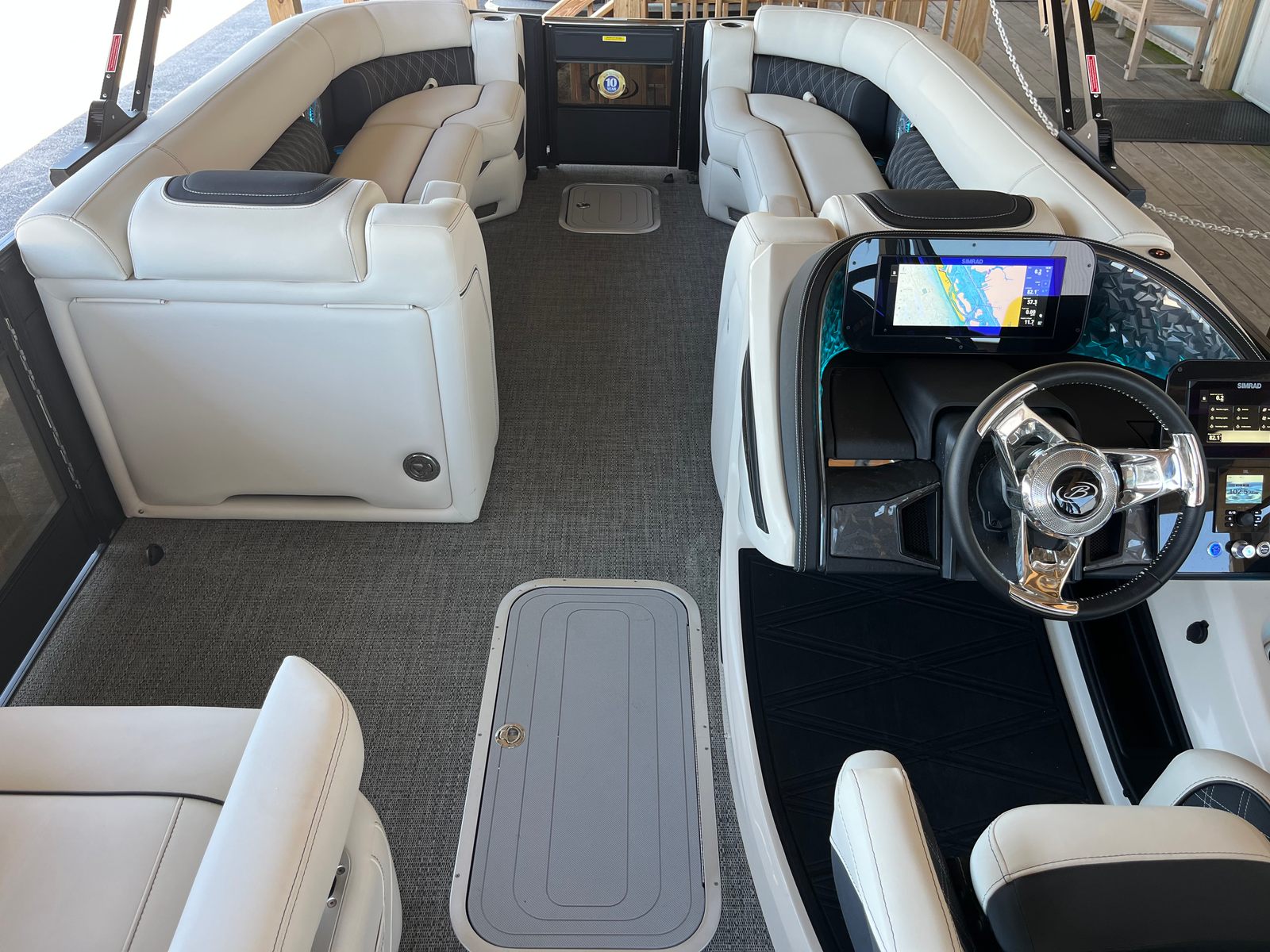 Owning the Barletta Lusso L25M Pontoon means embracing a lifestyle of fun, relaxation, and social connection. The spacious layout is perfect for hosting gatherings, enjoying meals, or simply lounging in comfort. The high-quality furniture and flooring create a welcoming environment, making every trip feel like a luxury getaway. The double bimini system offers flexible shade, allowing you to adapt to changing weather and maximize your enjoyment on the water. With advanced digital controls and integrated electric steering, navigating your pontoon is effortless, giving you more time to focus on making memories. The powerful Yamaha engine ensures you can explore further and faster, opening up new possibilities for adventure.