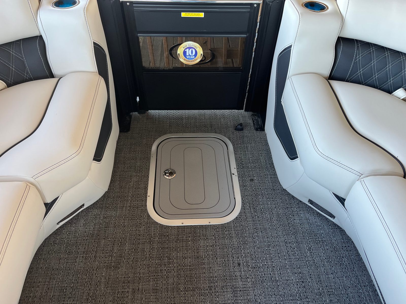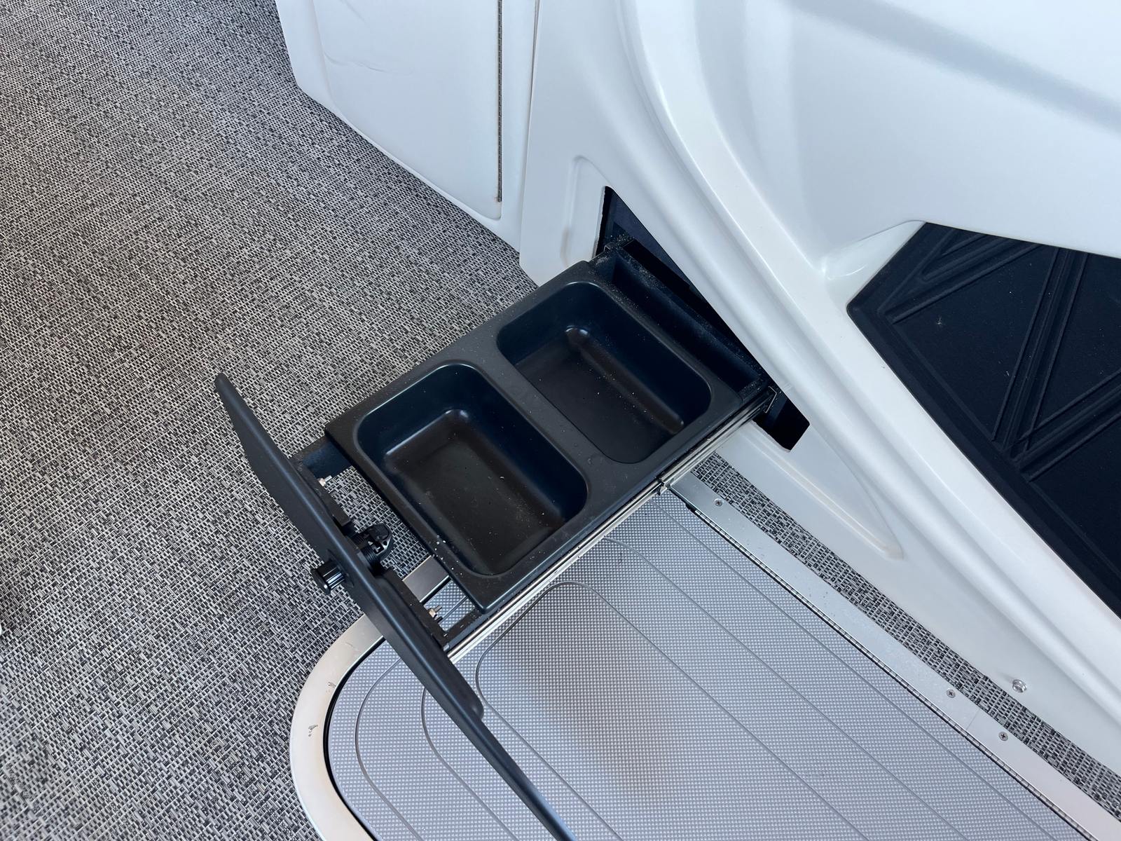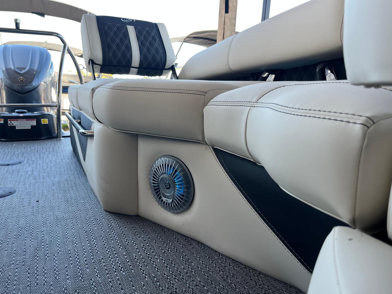 Owning the Barletta Lusso L25M Pontoon means embracing a lifestyle of fun, relaxation, and social connection. The spacious layout is perfect for hosting gatherings, enjoying meals, or simply lounging in comfort. The high-quality furniture and flooring create a welcoming environment, making every trip feel like a luxury getaway. The double bimini system offers flexible shade, allowing you to adapt to changing weather and maximize your enjoyment on the water. With advanced digital controls and integrated electric steering, navigating your pontoon is effortless, giving you more time to focus on making memories. The powerful Yamaha engine ensures you can explore further and faster, opening up new possibilities for adventure.