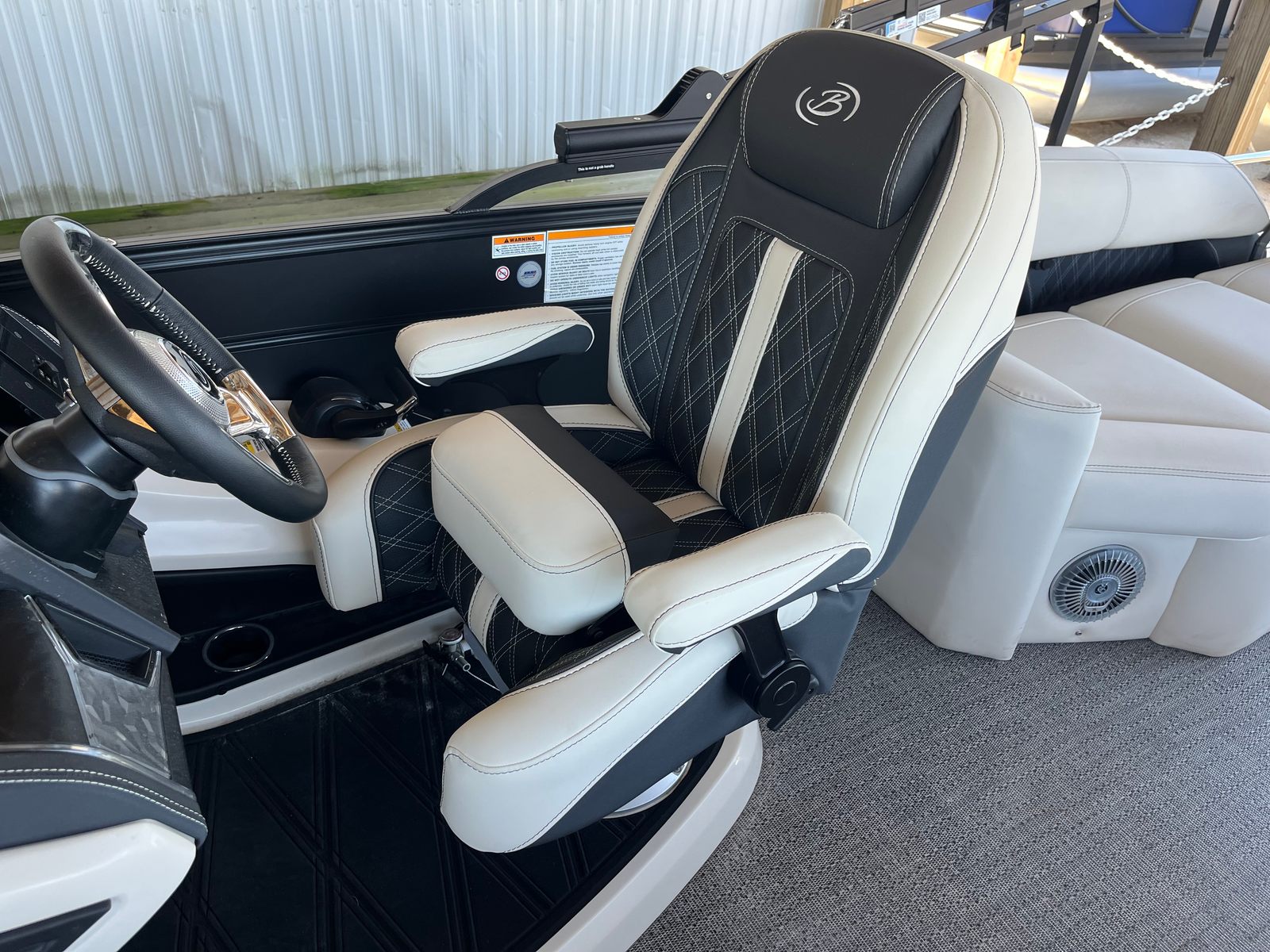 The 2026 Barletta Lusso L25M Pontoon is a remarkable blend of luxury, performance, and innovation. With its striking Matte Black design, premium furniture, advanced Yamaha engine, and versatile double bimini system, this pontoon boat for sale offers everything you need for unforgettable experiences on the water. The Coastal Edition Lusso and Blackout Package Lusso railskin add durability and style, while the integrated digital steering and gauges make operation effortless. If you’re searching for a Barletta boat for sale that delivers comfort, excitement, and lasting value, the Lusso L25M is the ultimate choice. Discover the joy of pontoon boating and elevate your lifestyle—contact your local dealer today to learn more about this exceptional vessel and start your next adventure.