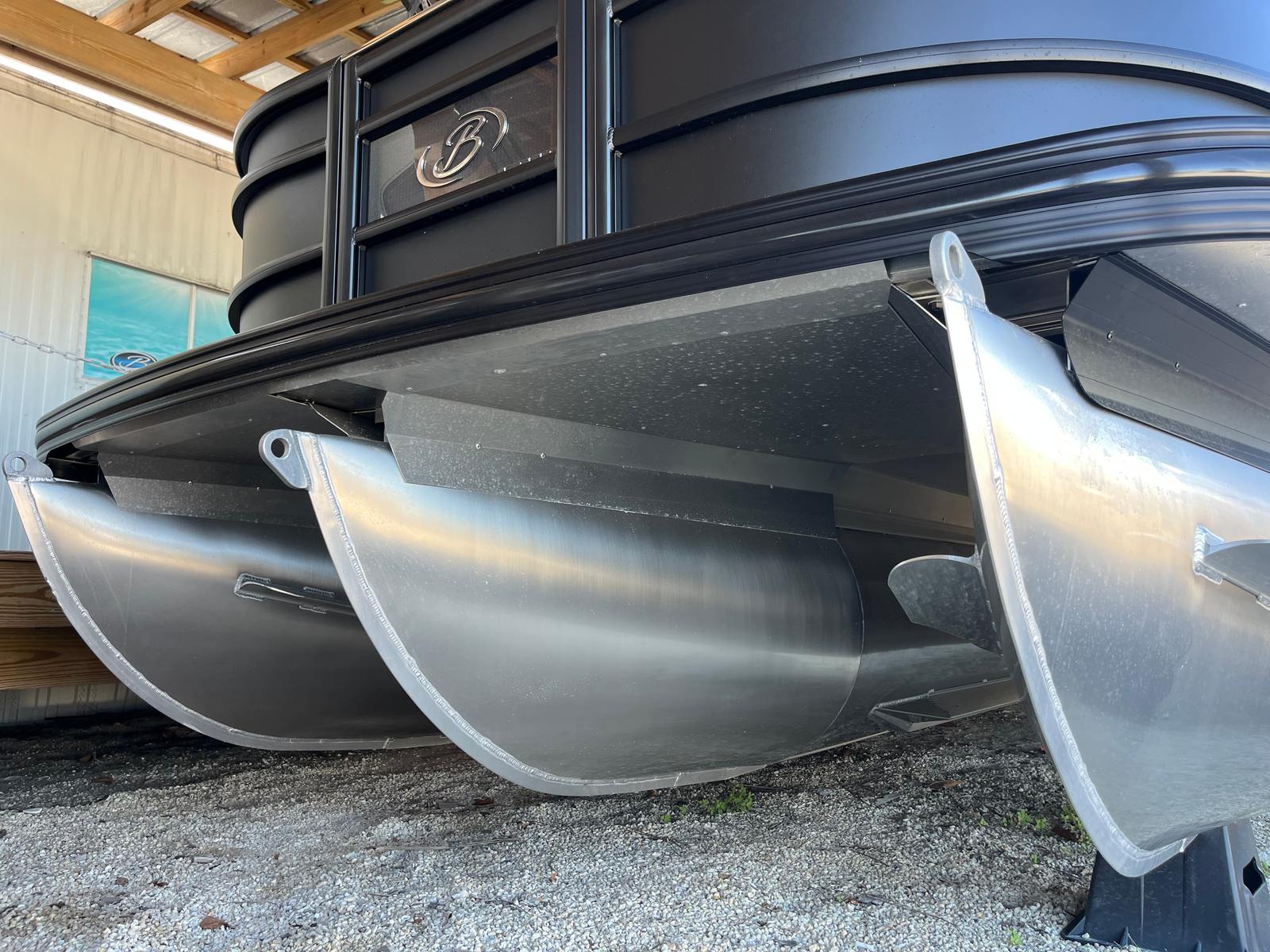 The Barletta Lusso L25M is packed with special features that set it apart from other pontoon boats for sale. The Coastal Edition Lusso enhances durability and style, making this pontoon ideal for a variety of water conditions. The Blackout Package Lusso railskin delivers a bold, contemporary look, while the Matte Black sweep and accent colors create a unified, sophisticated aesthetic. Inside, the Linen with Onyx furniture offers plush comfort and elegance, complemented by the Amore Gray flooring for a modern touch. The double bimini, including an additional power bimini, provides versatile shade options, ensuring comfort during sunny days and extended outings. The Yamaha Pre-Rig Digital system with integrated electric steering and digital gauges brings advanced technology to your fingertips, while the stainless steel prop ensures lasting performance.