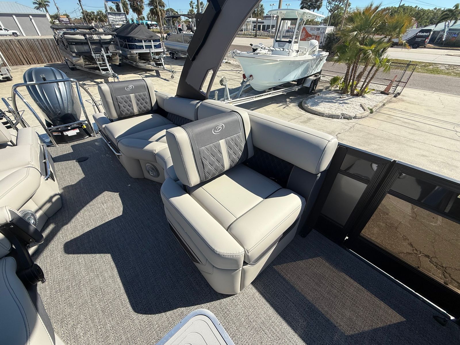 The 2025 Barletta Lusso L25MA is a brand-new pontoon boat measuring an impressive 27.5 feet in length. Designed for those who appreciate both style and substance, this pontoon delivers a spacious and inviting layout, perfect for entertaining or relaxing on the water. The Lusso series is renowned for its attention to detail, and the L25MA is no exception, boasting a sleek profile and a host of premium finishes that make it a standout in any marina.