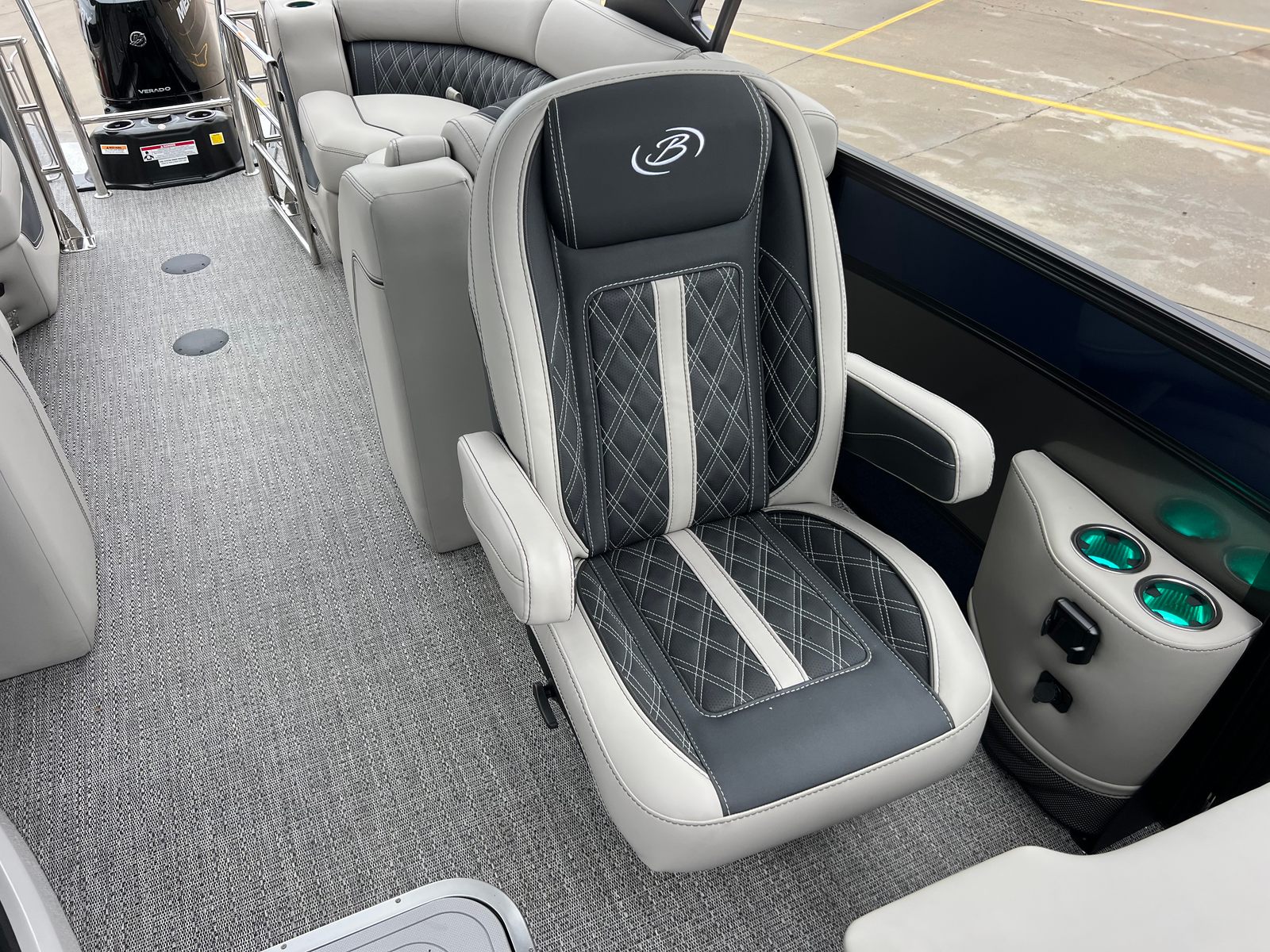 Power and precision are at the heart of the Barletta Lusso L25QCSSA’s performance. Equipped with a single Mercury (D) 350L V10 Verado engine, this pontoon delivers an impressive 350 horsepower, ensuring exhilarating acceleration and smooth cruising. The Mercury Digital Pre-Rig for V10 and the expertly rigged engine with a V10 prop guarantee seamless operation and optimal efficiency. Whether you are gliding across the water at a leisurely pace or seeking thrilling speeds, the Lusso L25QCSSA offers a dynamic and responsive ride that will satisfy even the most demanding boating enthusiasts.