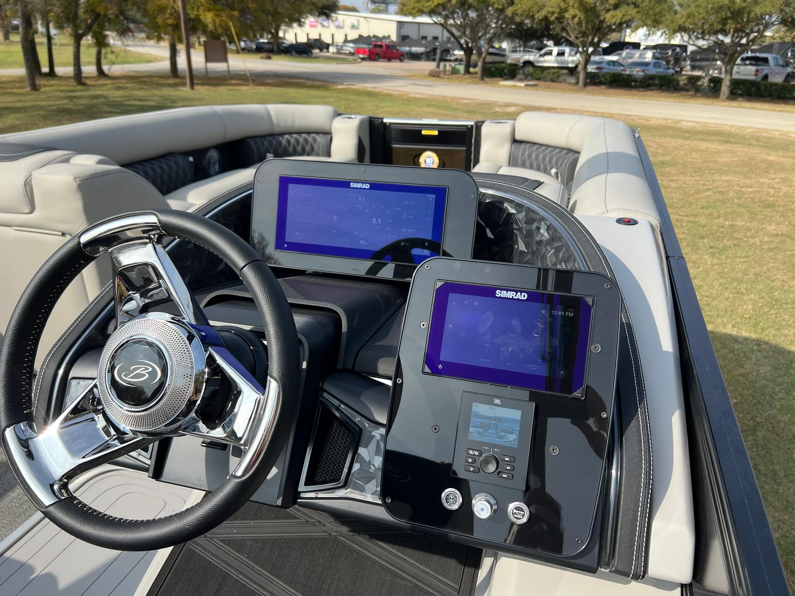 At the heart of the Barletta Lusso L25UA is the powerful Mercury (D) 400L V10 Verado engine, delivering an exhilarating 400 horsepower. This state-of-the-art engine is paired with Mercury Digital Pre-Rig for V10 and expertly rigged with a V10 prop, ensuring smooth, responsive handling and impressive acceleration. Whether you are cruising at a leisurely pace or powering across open water, the Lusso L25UA offers a dynamic and thrilling ride. The advanced engineering behind this pontoon boat guarantees both efficiency and reliability, making every outing a pleasure.