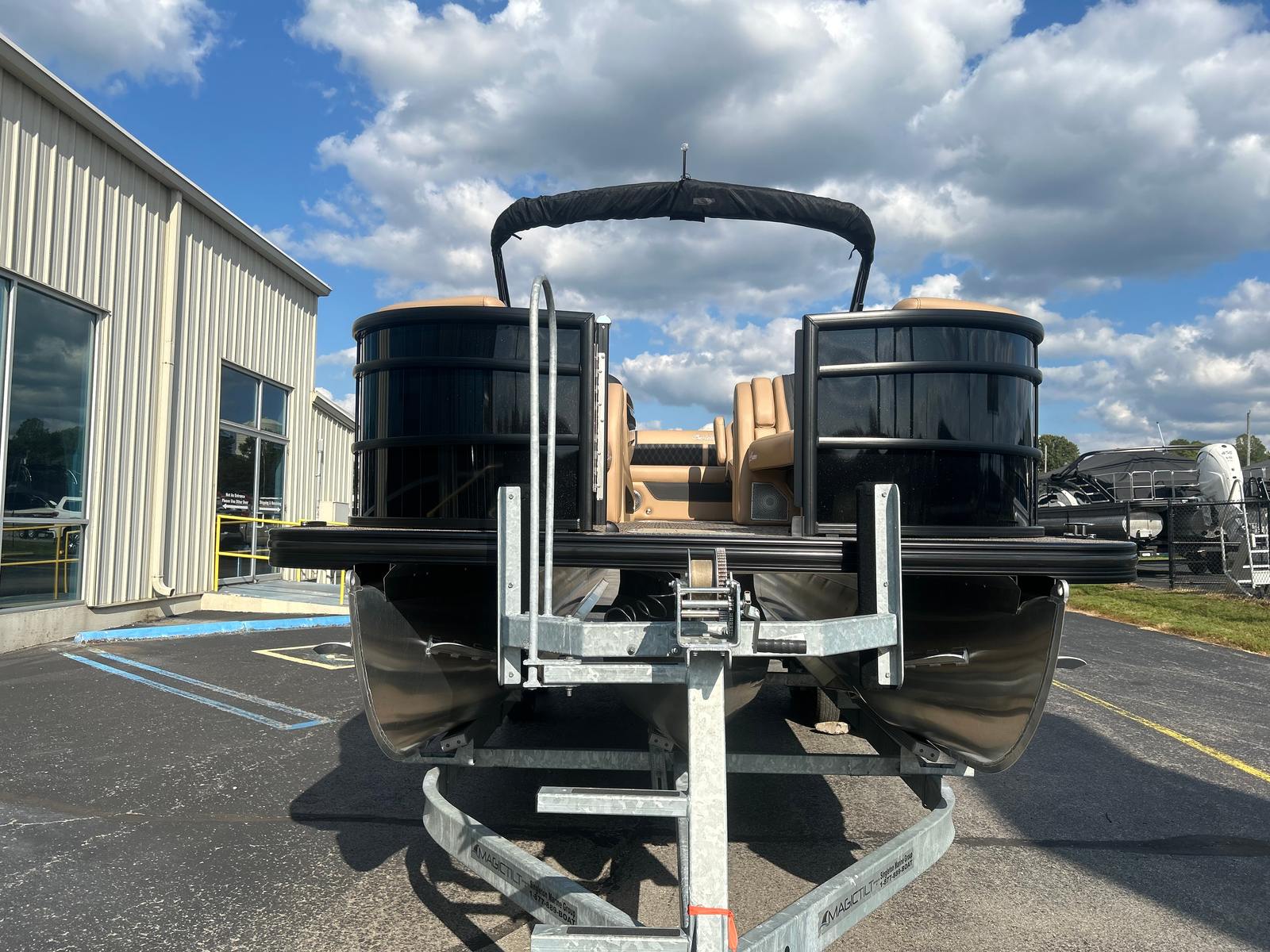 The 2026 Barletta Lusso L25UC is a showcase of premium features and sophisticated design. The exterior boasts a striking Black Diamond sweep color and accent color, complemented by the Blackout Package Lusso railskin, giving this pontoon a bold, modern look that turns heads at every marina. Step aboard and you’ll be greeted by Carmella Tan with Onyx furniture, offering plush comfort and a refined aesthetic. The Amore Tan flooring adds a touch of warmth and elegance, making every moment on deck feel like a luxury retreat.For those who love to entertain or relax in style, the Sport Bimini (installed in place of the standard bimini) provides ample shade and protection from the sun, allowing you to enjoy long days on the water in comfort. The white underdeck and underwater exterior lighting create a captivating ambiance for evening cruises, making every sunset and starlit night even more magical.