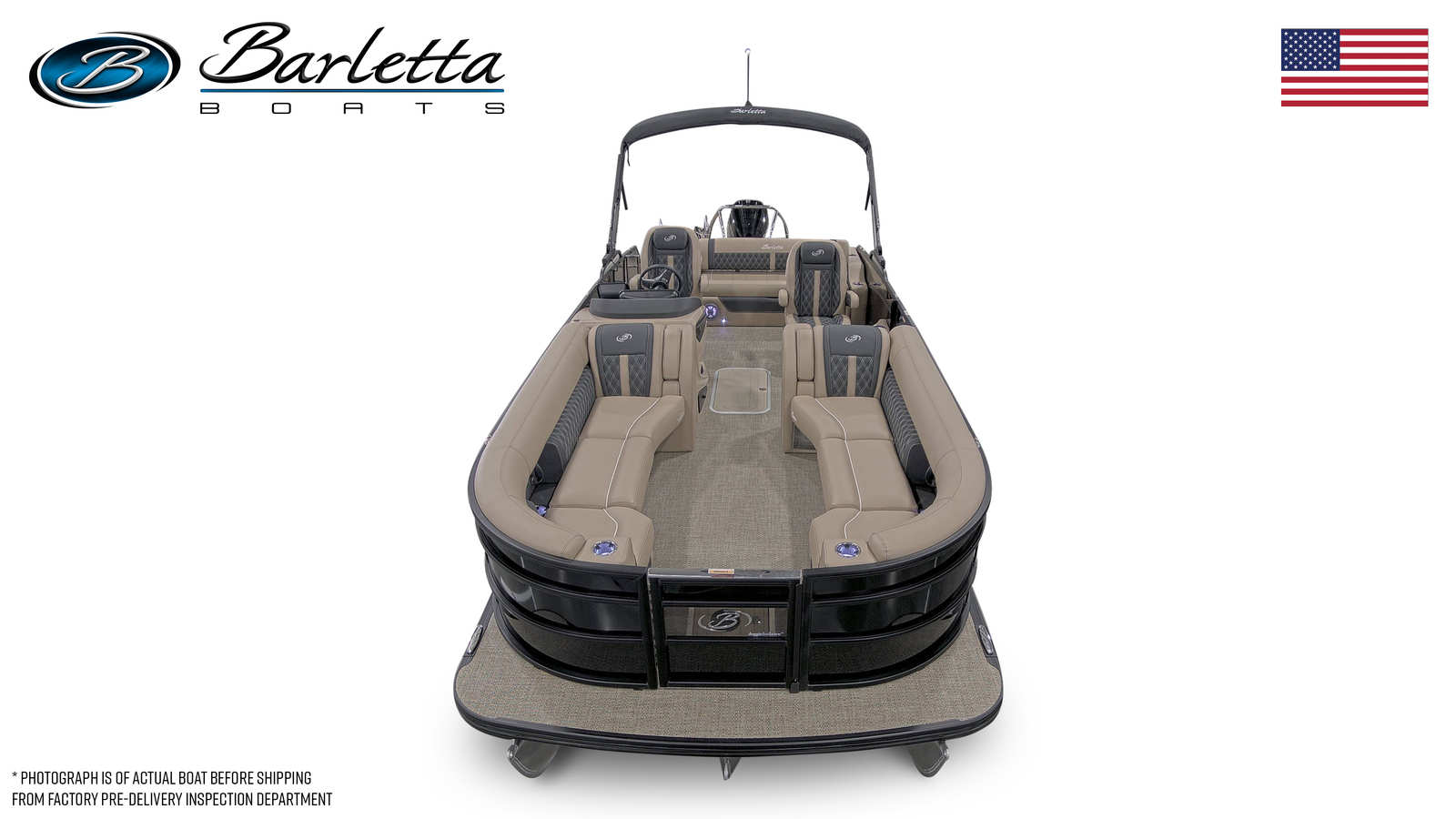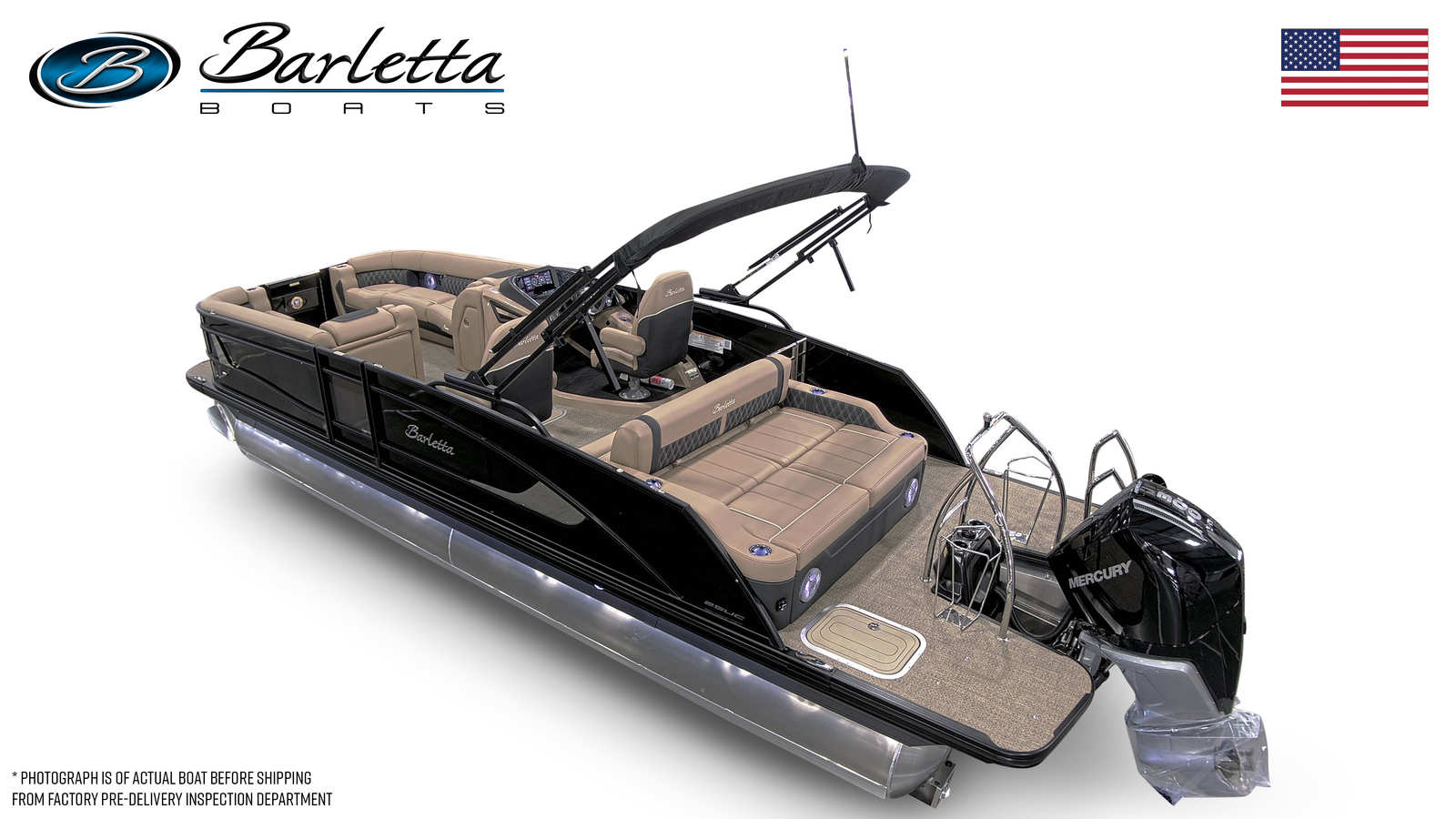 The 2026 Barletta Lusso L25UC stands out as a premier pontoon boat, measuring an impressive 27.5 feet in length. This brand-new vessel is meticulously crafted to deliver a superior on-water experience, whether you are cruising along the shoreline, anchoring at your favorite cove, or entertaining guests under the open sky. Its sleek profile, highlighted by the Black Diamond sweep and accent colors, ensures you will turn heads wherever you go. The Blackout Package Lusso adds a touch of modern elegance, while the Carmella Tan with Onyx furniture and Amore Tan flooring create a warm, inviting atmosphere for all aboard.