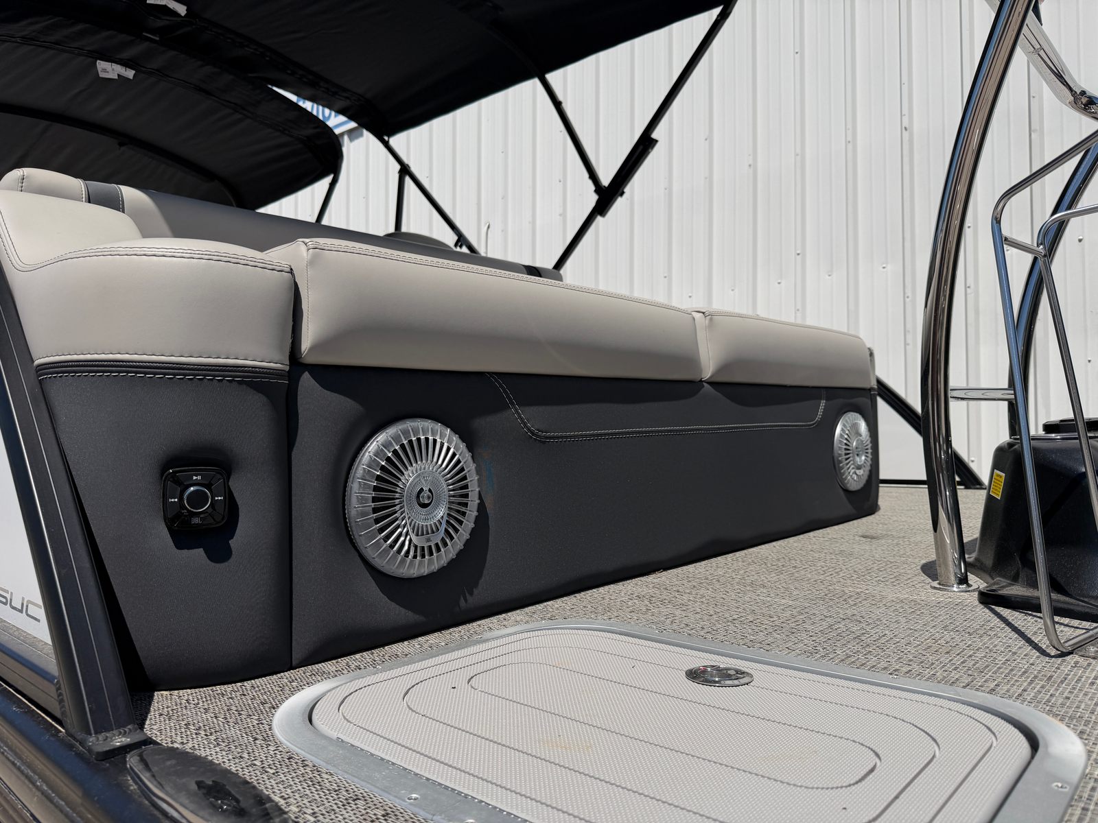 Powering the Barletta Lusso L25UC is a single Mercury (D) 300L Verado V8 engine, delivering a robust 300 horsepower. This engine is renowned for its smooth acceleration, quiet operation, and impressive fuel efficiency, making it ideal for both leisurely cruises and spirited rides across the lake. The Mercury Digital DTS Pre-Rig for VERADO engines with Vessel Link ensures seamless integration and precise control, while the hydraulic and power assist steering provides effortless maneuverability. Whether you’re navigating tight marinas or open waters, the Lusso L25UC offers a responsive and enjoyable driving experience that sets it apart from other pontoon boats for sale.