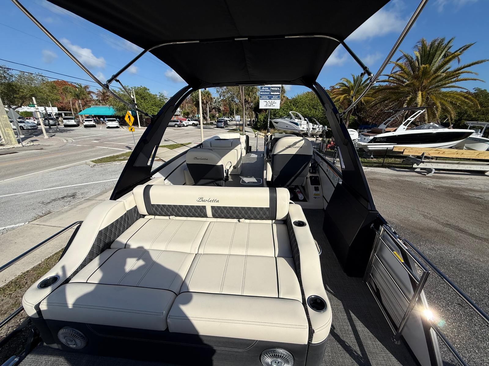 The 2026 Barletta Lusso L25UCAT stands out as a premier pontoon, boasting a generous length of 28.25 feet. Its sleek profile, accentuated by the sophisticated Winter White sweep and accent colors, ensures you’ll turn heads wherever you cruise. The new condition of this pontoon guarantees that you’ll be the first to experience its pristine features and innovative design. Every inch of this Barletta boat for sale is engineered for both elegance and durability, making it a top contender in the luxury pontoon market.