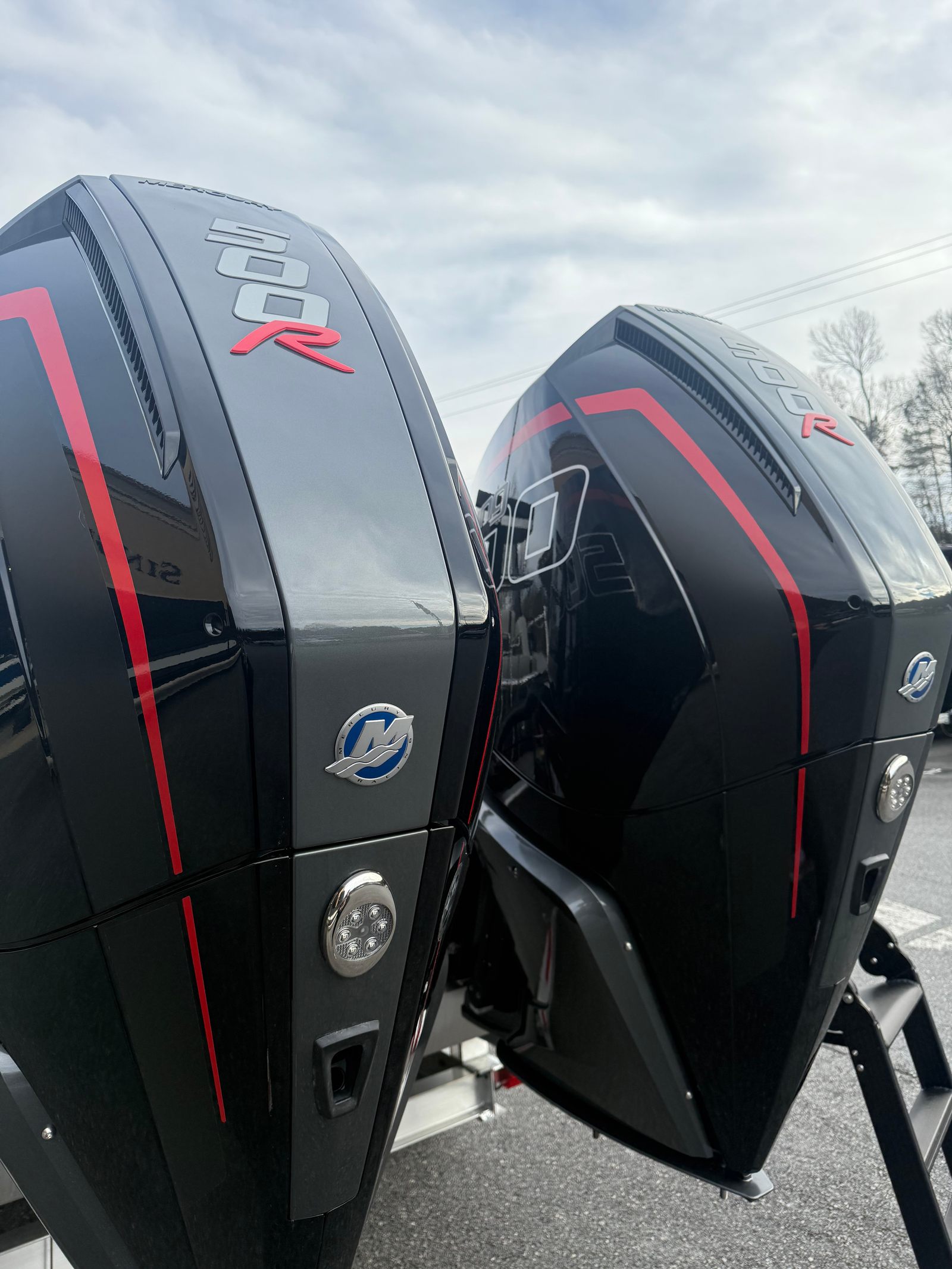 Under the hood, the Lusso L25UCAT boasts twin Mercury 500R CR JPO engines, delivering a combined 1000 horsepower for exhilarating speed and smooth handling. The advanced Pre-Rig (450R/500R) Twin JPO system ensures seamless integration and optimal performance, while the Rig Twin Engine with Prop setup maximizes efficiency and reliability. With this much power at your fingertips, you’ll experience rapid acceleration, effortless cruising, and precise maneuverability—whether you’re exploring open waters or navigating tight docking spaces.