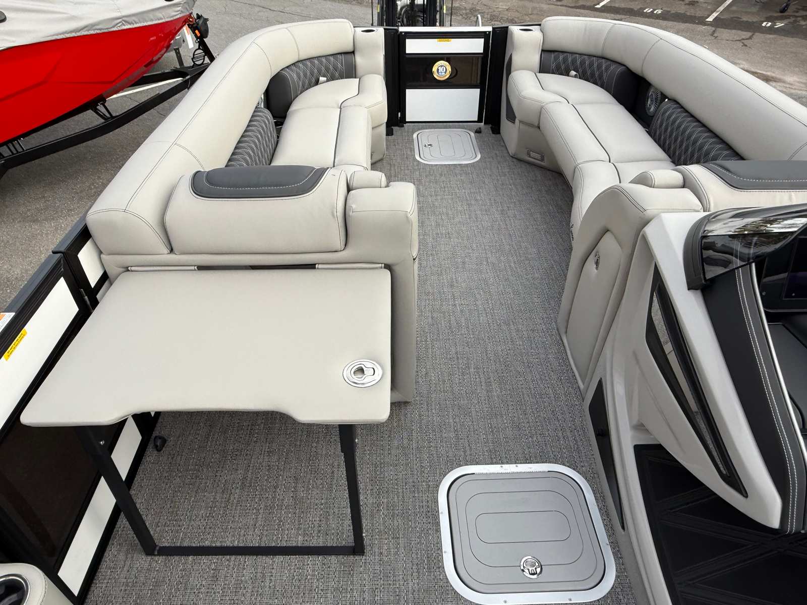 Beyond its luxurious features, the Lusso L25UCAT is engineered for practical convenience. The generous length and open layout provide plenty of storage for gear, water toys, and personal items, keeping the deck clutter-free and organized. The twin engine configuration not only boosts performance but also simplifies docking and maneuvering, making it easy for both seasoned captains and newcomers to handle.Fuel efficiency is enhanced by the advanced Mercury engines, allowing you to spend more time on the water and less at the pump. The durable flooring and high-quality materials ensure longevity and easy maintenance, so your pontoon stays looking pristine season after season.