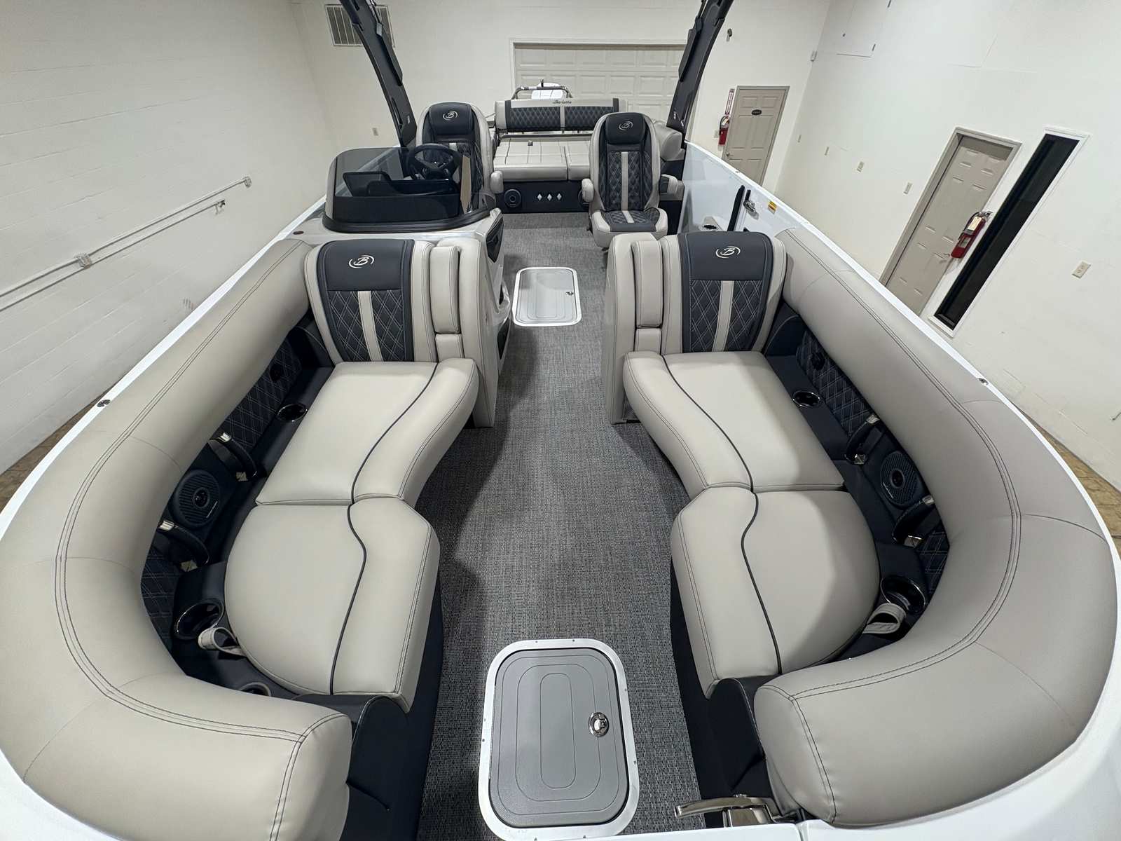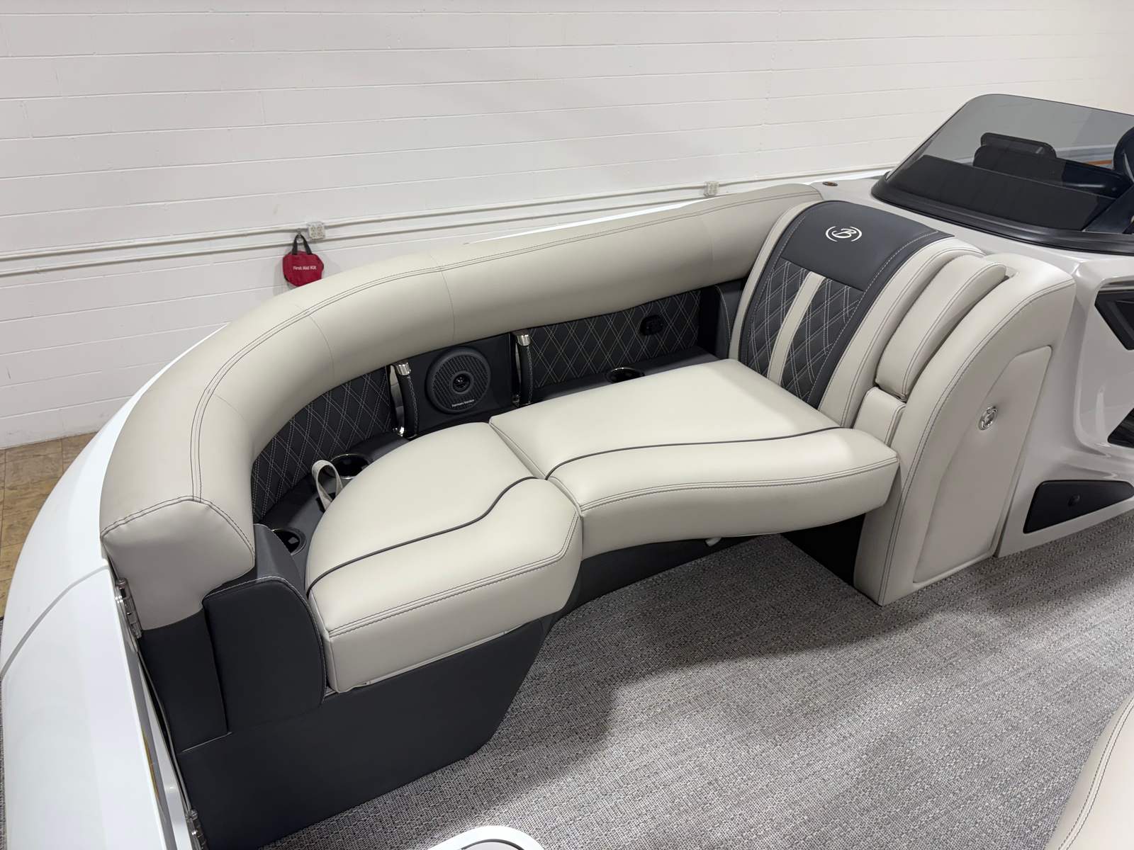 Owning the Barletta Reserve Leggera R26UCA means embracing a lifestyle of fun, relaxation, and social connection. The spacious deck layout is perfect for hosting gatherings, with ample seating and open areas for lounging, dining, or sunbathing. The thoughtfully designed furniture and flooring create a luxurious environment, making every outing feel like a special occasion.The powerful Mercury engine ensures you can enjoy a wide range of activities, from leisurely cruises to thrilling water sports. The advanced digital rigging and AccuThruster System make handling the boat intuitive and stress-free, even for less experienced captains. With the on-board battery charger, you can confidently power your electronics and accessories, knowing you have reliable energy for extended trips.