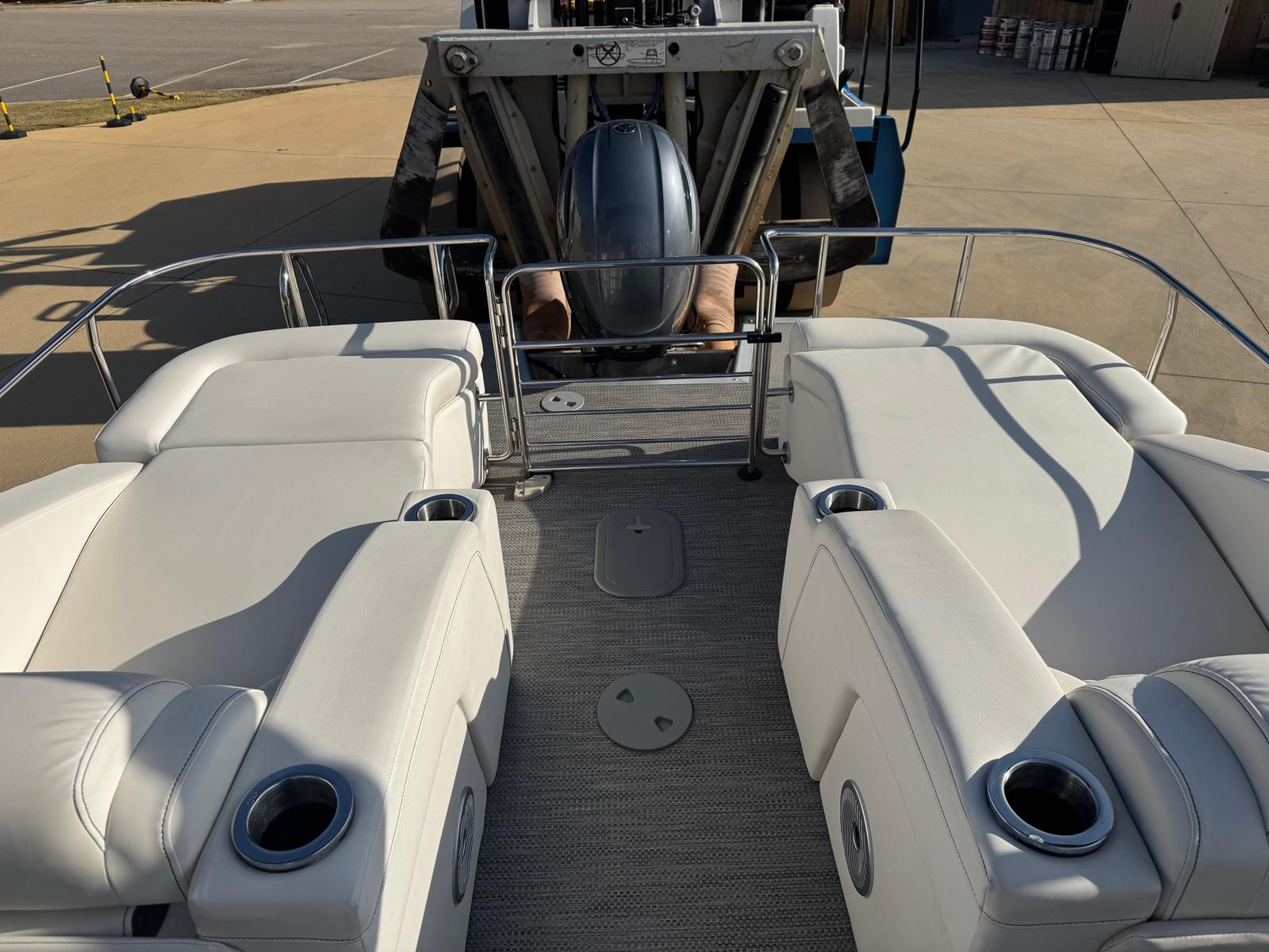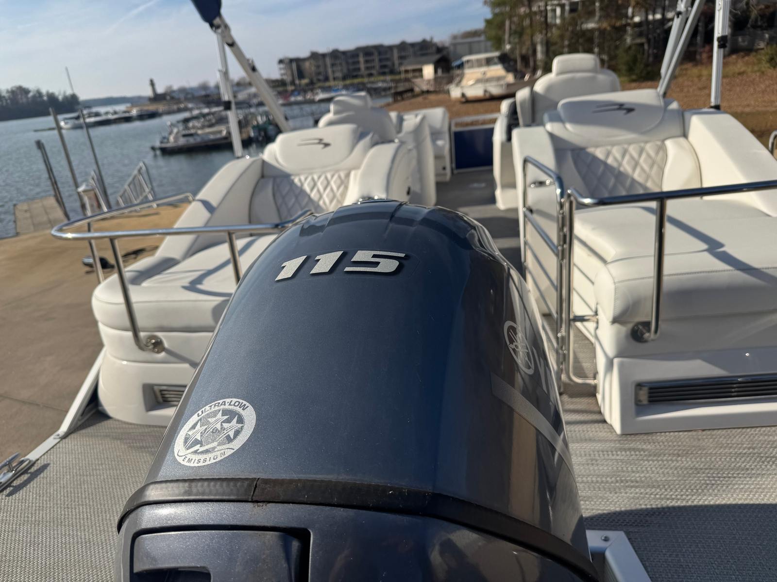 Under the smooth, classic exterior sits a triple-log or reinforced two-log pontoon configuration (depending on factory options) designed to deliver steady buoyancy and forgiving handling. With the reliable 115hp Yamaha outboard mounted on the transom, the 23 QCW offers a lively but efficient powerplant. Yamaha engines are known for their long service intervals, smooth acceleration, and good fuel economy in their class — attributes that translate to a pleasant day on the water whether you’re sampling a morning cruise or running back to the marina after sunset. The engine’s performance complements the boat’s hull design: acceleration up to cruising speed is brisk, and the boat remains composed when the chop picks up.