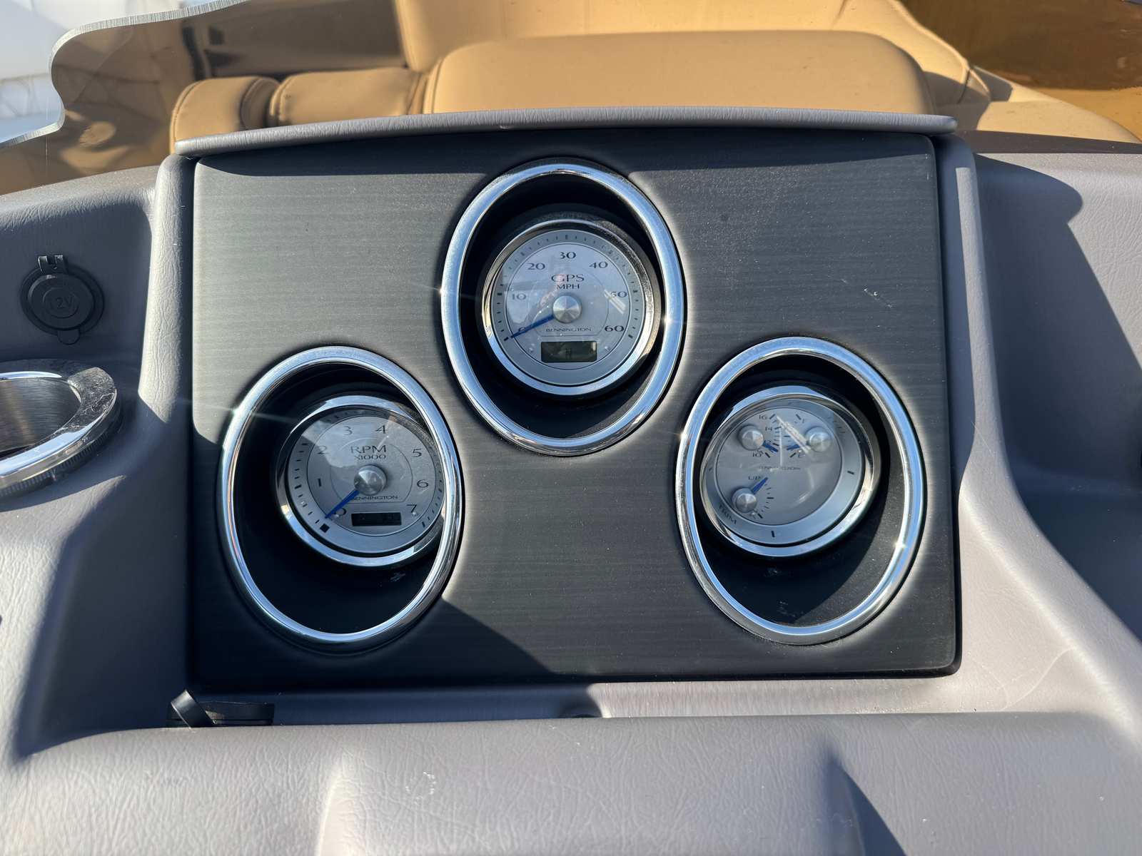 The helm area is driver-centric without being isolated from the party. A comfortable captain’s chair with swivel and adjustable features provides a commanding view of the water and instruments. The dash is neatly organized, with an ergonomically placed throttle, a clear Yamaha gauge cluster, and space for a chartplotter or fishfinder if you choose to add electronics. Bennington’s steering is predictable and confidence-inspiring — the boat tracks well and feels stable during turns, which is especially important for giving newer drivers peace of mind and experienced boaters the control they expect.