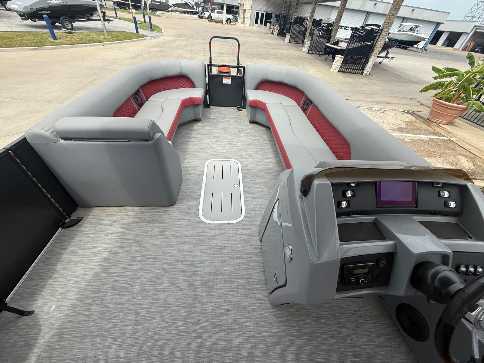 The Bennington 25 Lsba pontoon boat is designed with both comfort and functionality in mind. Its spacious 25-foot deck provides plenty of room for guests to spread out, relax, and enjoy the scenery. The open layout is perfect for social gatherings, allowing everyone to move freely and interact with ease. The pontoon’s sturdy construction and high-quality materials ensure durability and low maintenance, so you can spend more time enjoying the water and less time worrying about upkeep.Special features of the 2023 Bennington 25 Lsba include a powerful 250-horsepower engine, which enhances both speed and maneuverability. The boat’s design maximizes stability, making it ideal for a variety of activities, from leisurely cruises to lively parties. The seating arrangement is thoughtfully planned to provide comfort and convenience, with plush upholstery and ergonomic support. The deck layout also allows for easy customization, so you can tailor the space to suit your specific needs and preferences.