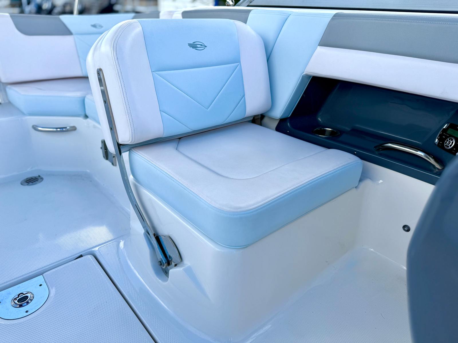 The 2020 Chaparral 230 Suncoast stretches an impressive 22 feet in length, providing ample space for friends and family to enjoy the sun and surf. This used bowrider is in excellent condition, with only 225 engine hours, ensuring many more seasons of reliable performance. The sleek lines and modern design of the 230 Suncoast make it a head-turner at any marina, while its thoughtful layout maximizes both comfort and functionality.