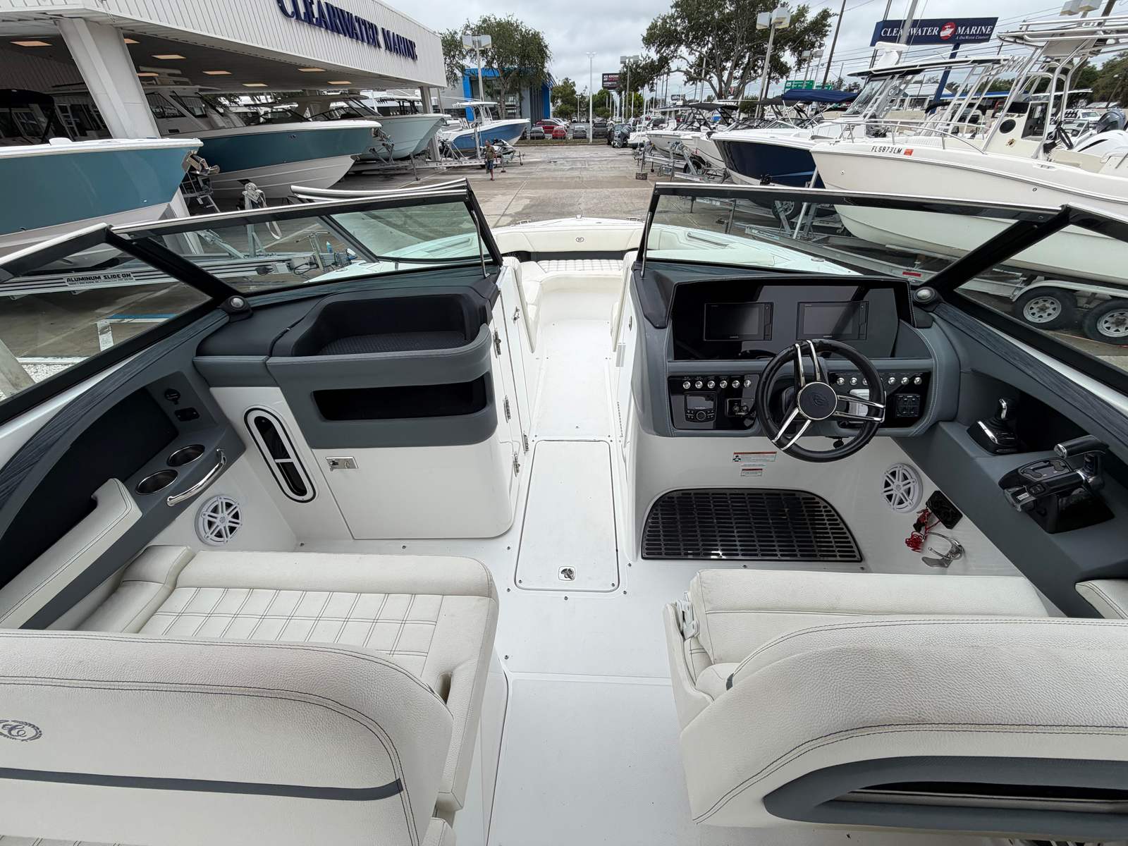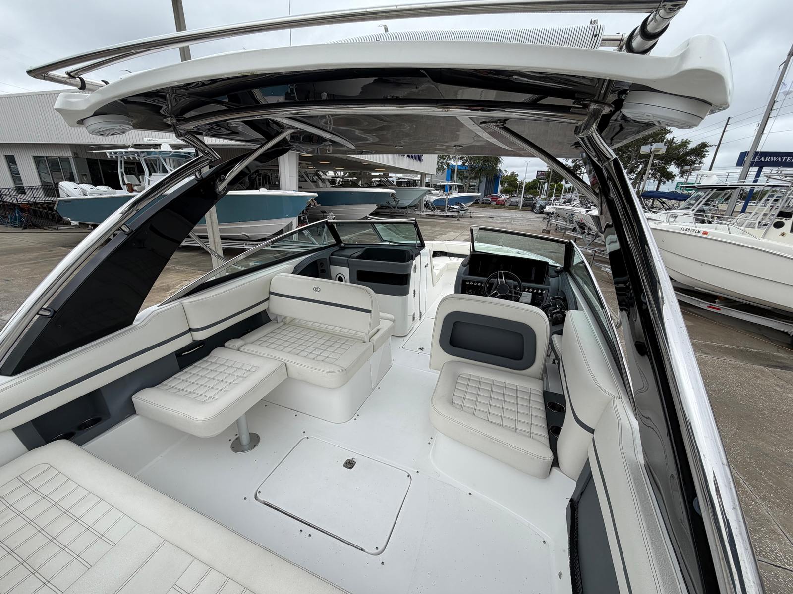 The Cobalt 30 SC is as practical as it is fun. The center console design provides excellent visibility for the captain and makes docking and maneuvering in tight spaces a breeze. The spacious deck offers plenty of room for storage, ensuring that all your gear, from fishing rods to water toys, is easily accessible. The efficient twin-engine setup not only delivers impressive power but also contributes to better fuel economy, allowing you to spend more time on the water and less time at the pump. Whether you are planning a day of fishing, a weekend getaway, or a casual cruise, this center console boat for sale adapts to your needs with ease.