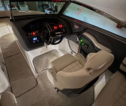 Practicality is another key advantage of the 2021 Cobalt R5. The boat’s thoughtful layout includes ample storage for all your gear, making it easy to keep the deck clutter-free and organized. Docking is a breeze thanks to the boat’s responsive handling and manageable size, allowing you to navigate marinas and tight spaces with confidence.Fuel efficiency is enhanced by Cobalt’s advanced hull design, ensuring you can enjoy longer outings without frequent refueling stops. The single-engine setup simplifies maintenance and reduces operating costs, making this used Cobalt boat for sale an economical choice for savvy buyers.