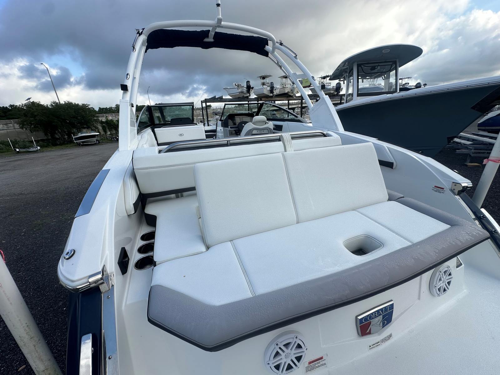 This stunning bowrider comes fully loaded with top-tier features, starting with dual 9" Garmin touchscreens at the helm—giving you total control and real-time data at your fingertips. Crank up your favorite tunes with the JL Audio premium stereo system, delivering crystal-clear sound whether you're cruising or anchored at the sandbar.