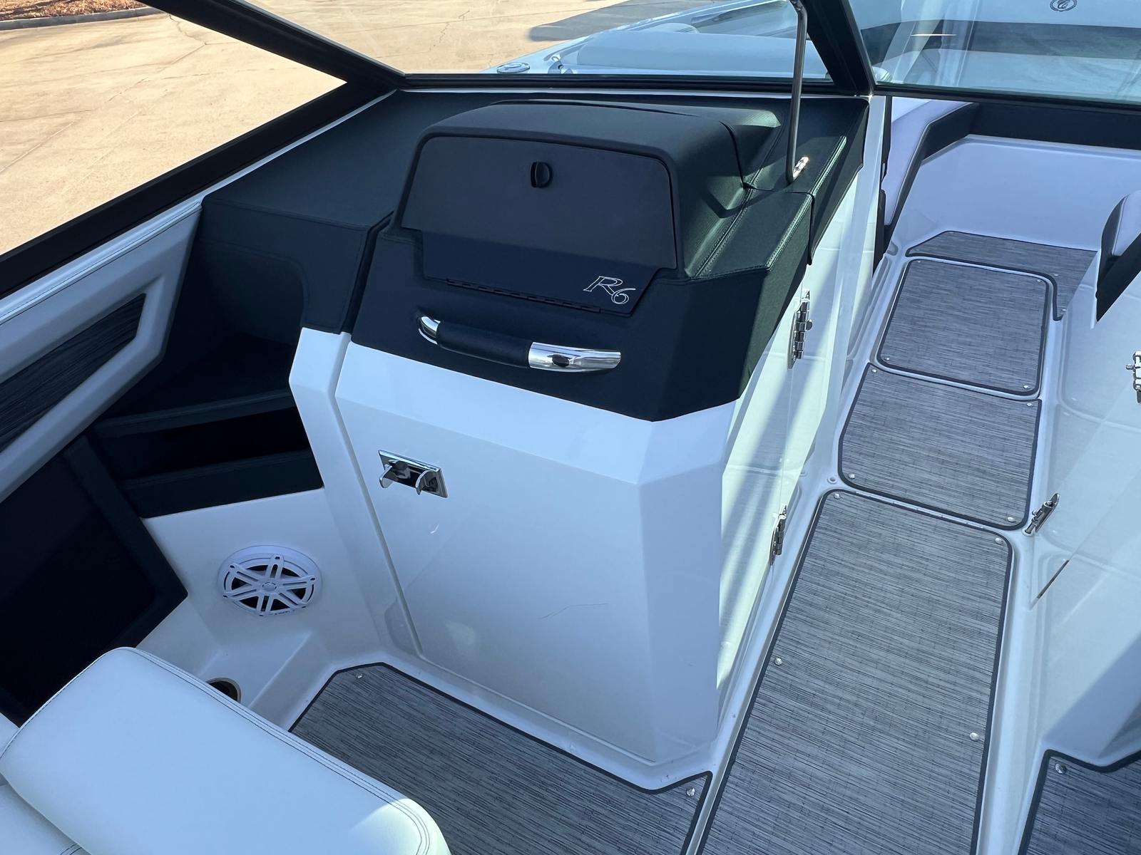 The 2022 Cobalt R6 is loaded with features that elevate your time on the water. Its spacious 25.5-foot length offers generous seating and lounging areas, allowing everyone on board to find their perfect spot. The Bowrider layout maximizes open space, making it easy to move about and socialize. The ergonomic helm is designed for comfort and control, with intuitive gauges and controls that put everything you need at your fingertips. The plush seating is crafted from premium materials, ensuring durability and comfort even during long days on the water. The R6’s thoughtful design includes ample storage compartments, so you can stow away gear, snacks, and personal items with ease. Every detail of the Cobalt R6 is engineered to enhance your boating lifestyle, from the stylish exterior to the functional and inviting interior.