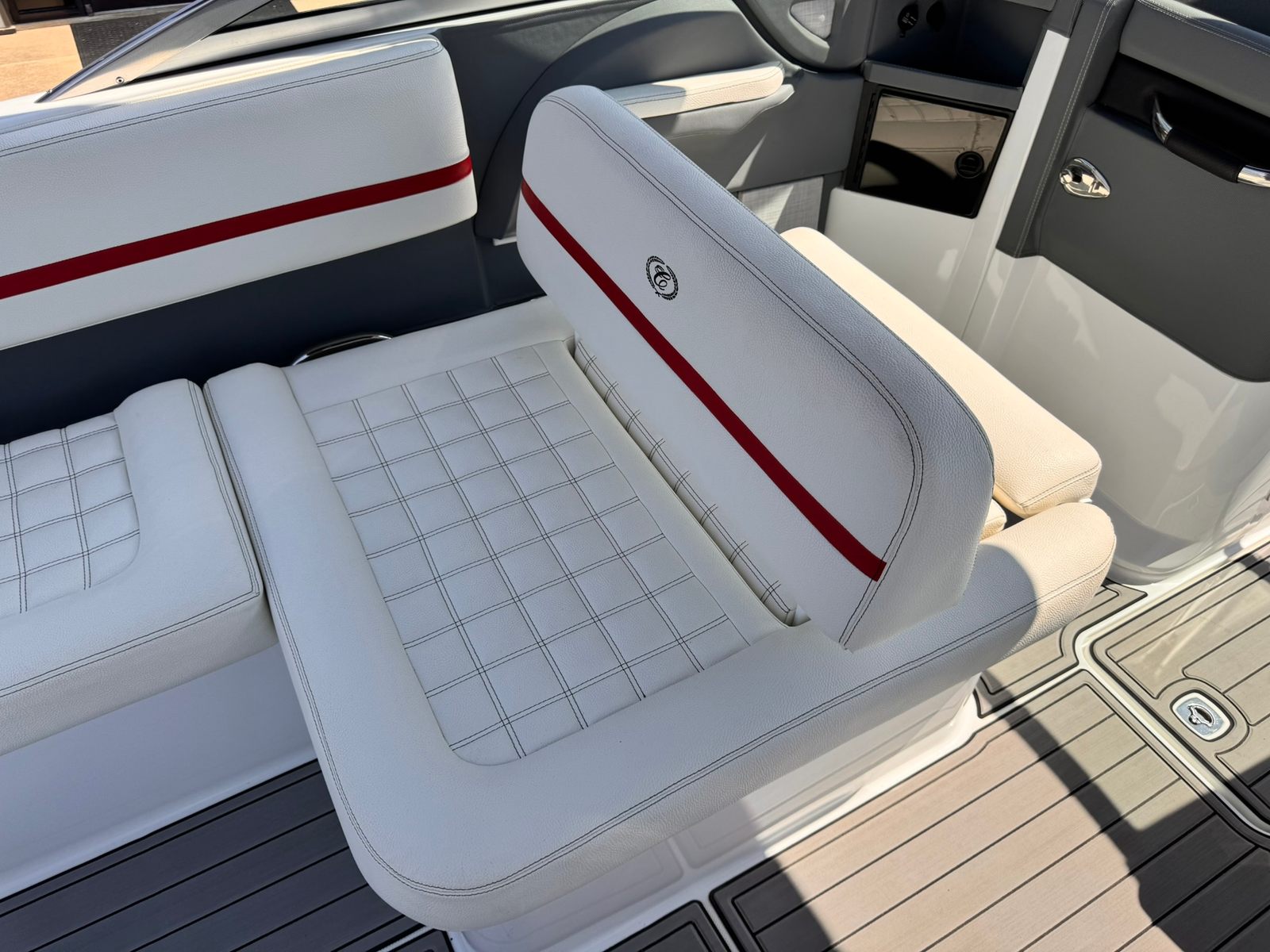 Benefits: Owning a Cobalt R7 Surf means embracing a lifestyle of fun, relaxation, and adventure. The Bowrider configuration is ideal for socializing, with plenty of room for friends and family to stretch out and enjoy the sunshine. The powerful 380-horsepower engine provides the excitement of high-speed runs, while the spacious deck invites you to slow down and soak in the scenery. Whether you are hosting a sunset cruise, anchoring at your favorite cove, or pulling a wakeboarder behind the boat, the R7 Surf delivers endless opportunities for enjoyment. Comfort is at the heart of the R7 Surf’s design. The plush seating, ergonomic layout, and smooth ride ensure that every outing is enjoyable, no matter how long you stay on the water. The boat’s premium construction and attention to detail reflect Cobalt’s commitment to quality, giving you peace of mind and pride of ownership.