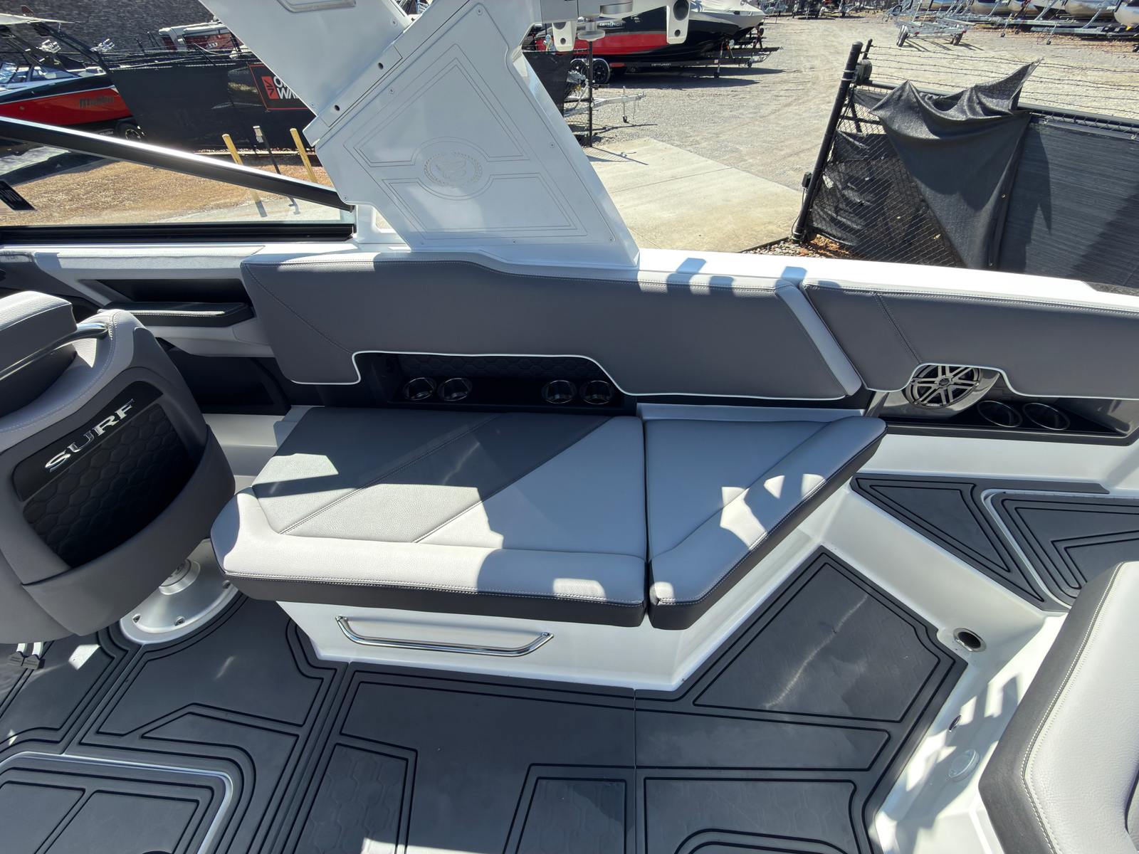 Under the hood, the Cobalt R8 Surf is powered by a single engine delivering a robust 380 horsepower. This powerful setup ensures exhilarating acceleration, smooth cruising, and reliable performance whether you’re towing wakeboarders or exploring new waterways. The engine’s advanced engineering provides impressive fuel efficiency and responsive handling, making every outing both thrilling and economical. With this Bowrider boat for sale, you’ll experience the perfect balance of speed, agility, and control, all backed by Cobalt’s reputation for durability and reliability.