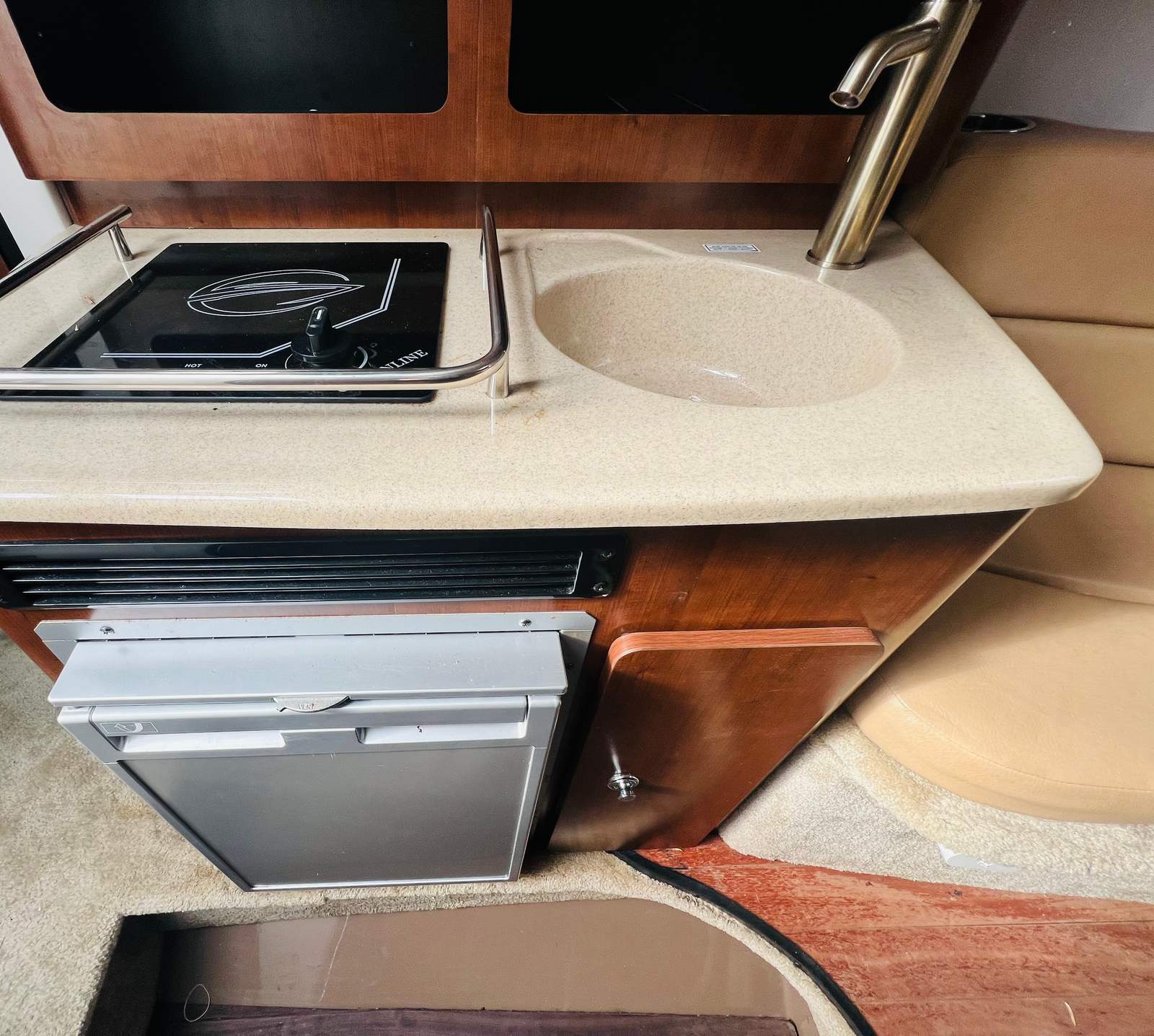 This Crownline boat for sale is packed with features that elevate your time on the water. The 26-foot length provides a spacious deck and cabin, perfect for hosting friends and family or enjoying a quiet retreat. The ergonomic helm station offers intuitive controls and excellent visibility, ensuring a safe and enjoyable journey. The cabin is designed for comfort, with plush seating and thoughtful storage solutions that maximize space and convenience. The boat’s layout is ideal for both daytime cruising and overnight stays, making it a versatile choice for a wide range of activities.