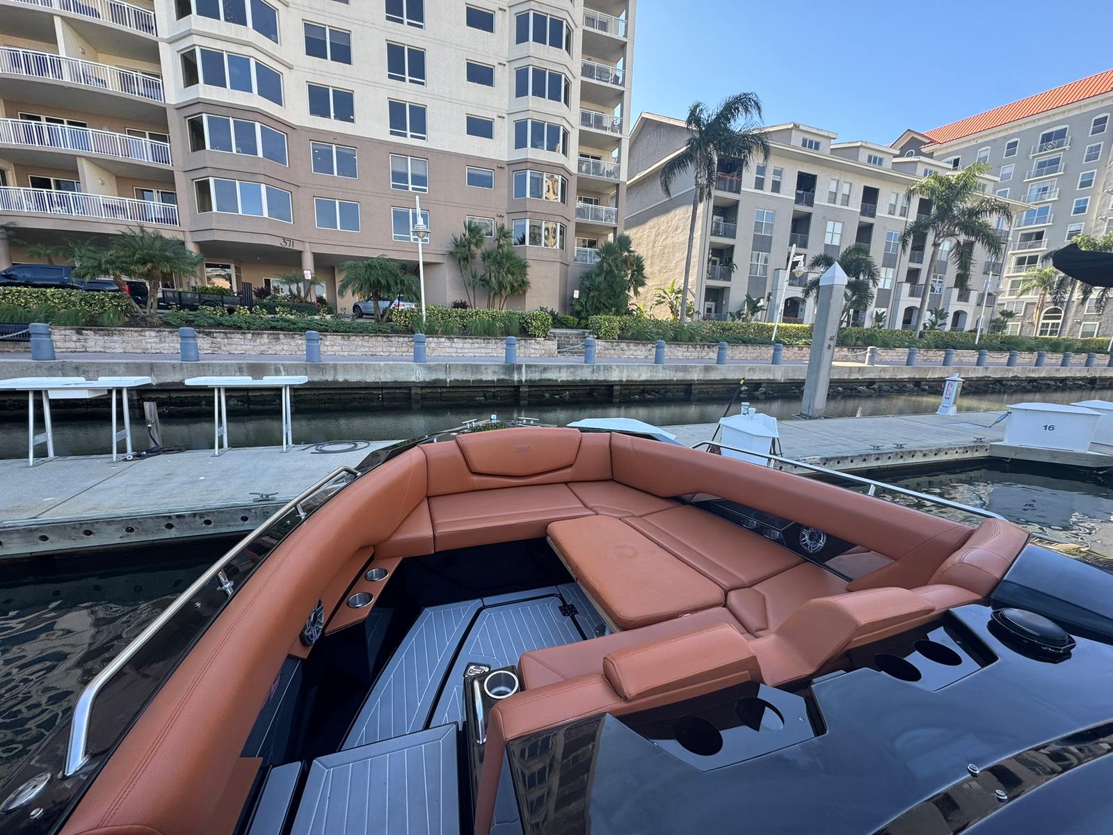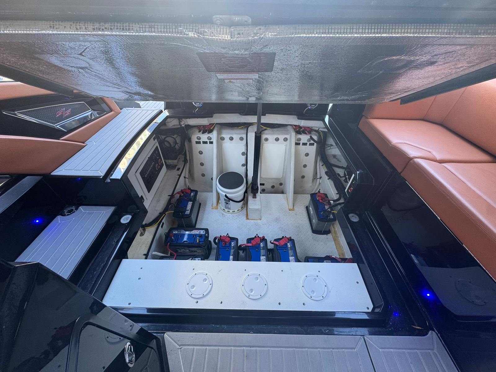 Inside, the boat features full SeaDek flooring and a beautifully finished cabin enhanced with a Lithium power bank that runs the cabin A/C system, making overnights and hot Florida days a breeze—even away from shore power.