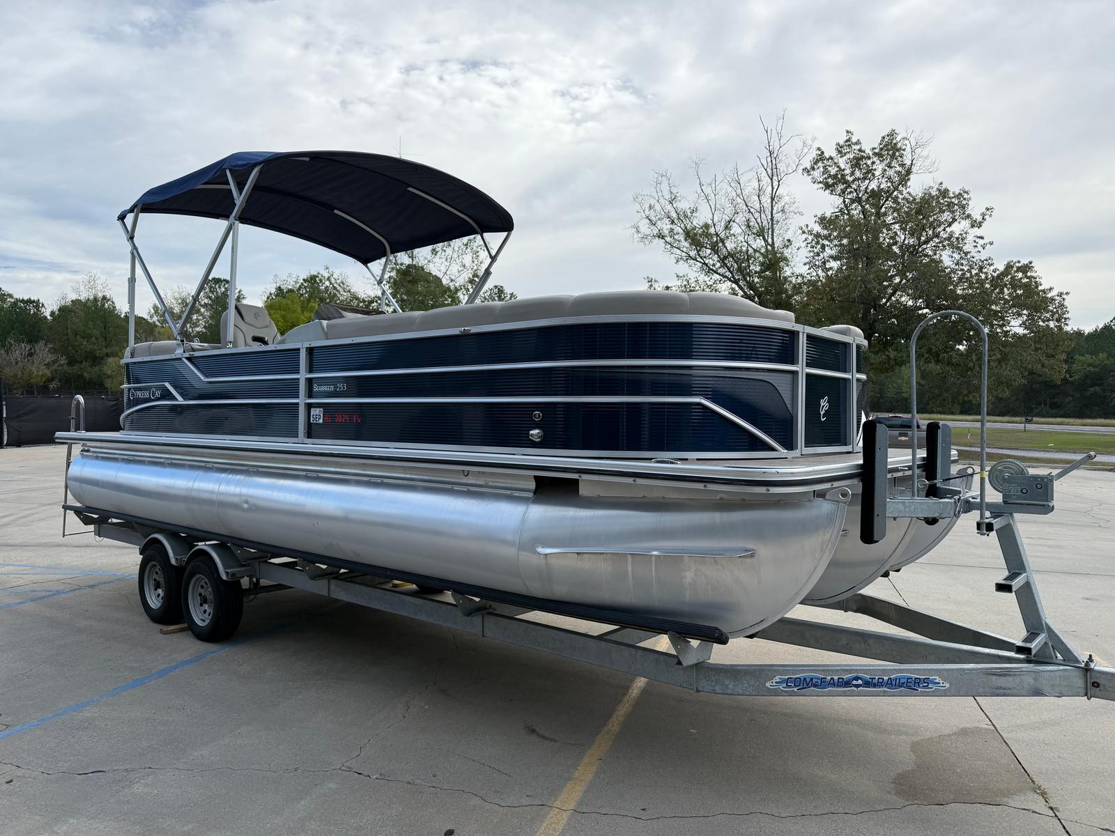 The Cypress Cay 253 Seabreeze is a 25-foot pontoon boat designed for memorable moments with family and friends. Built in 2018, this model combines modern engineering with timeless style, making it a sought-after Cypress Cay boat for sale among boating enthusiasts. Its generous length provides ample space for socializing, lounging, and enjoying the scenic beauty of lakes, rivers, or coastal waters. Whether you’re hosting a lively gathering or seeking a peaceful escape, the 253 Seabreeze offers the perfect setting.