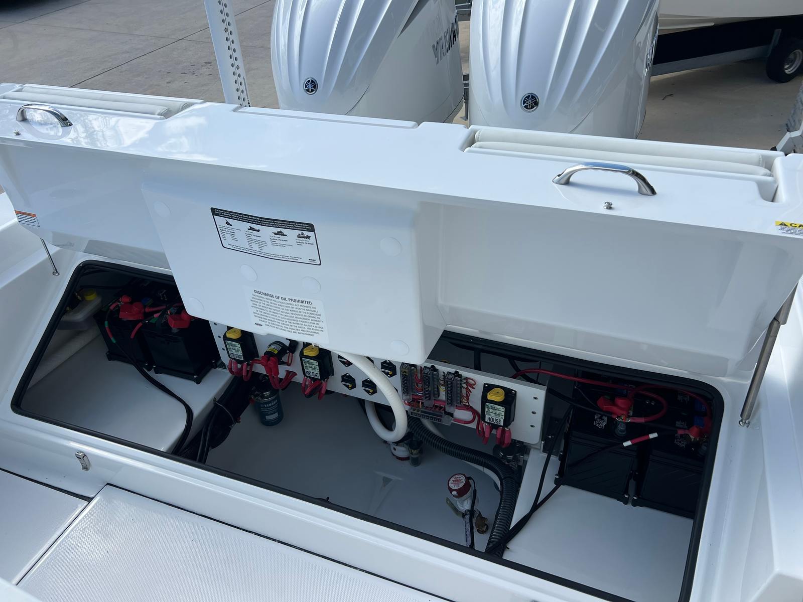 Power and precision define the performance of the Everglades 273 CC. Equipped with twin Yamaha F300XSB2 engines, this center console boat delivers a combined 600 horsepower, ensuring exhilarating acceleration and impressive top-end speed. The advanced Yamaha engines are renowned for their reliability, smooth operation, and fuel efficiency, making them a favorite among boating enthusiasts. Whether you are cruising along the coastline, heading offshore for a day of fishing, or simply enjoying a leisurely ride, the Everglades 273 CC offers responsive handling and a stable ride in a variety of conditions. The dual-engine setup also provides added peace of mind, ensuring you have the power and redundancy needed for longer journeys.