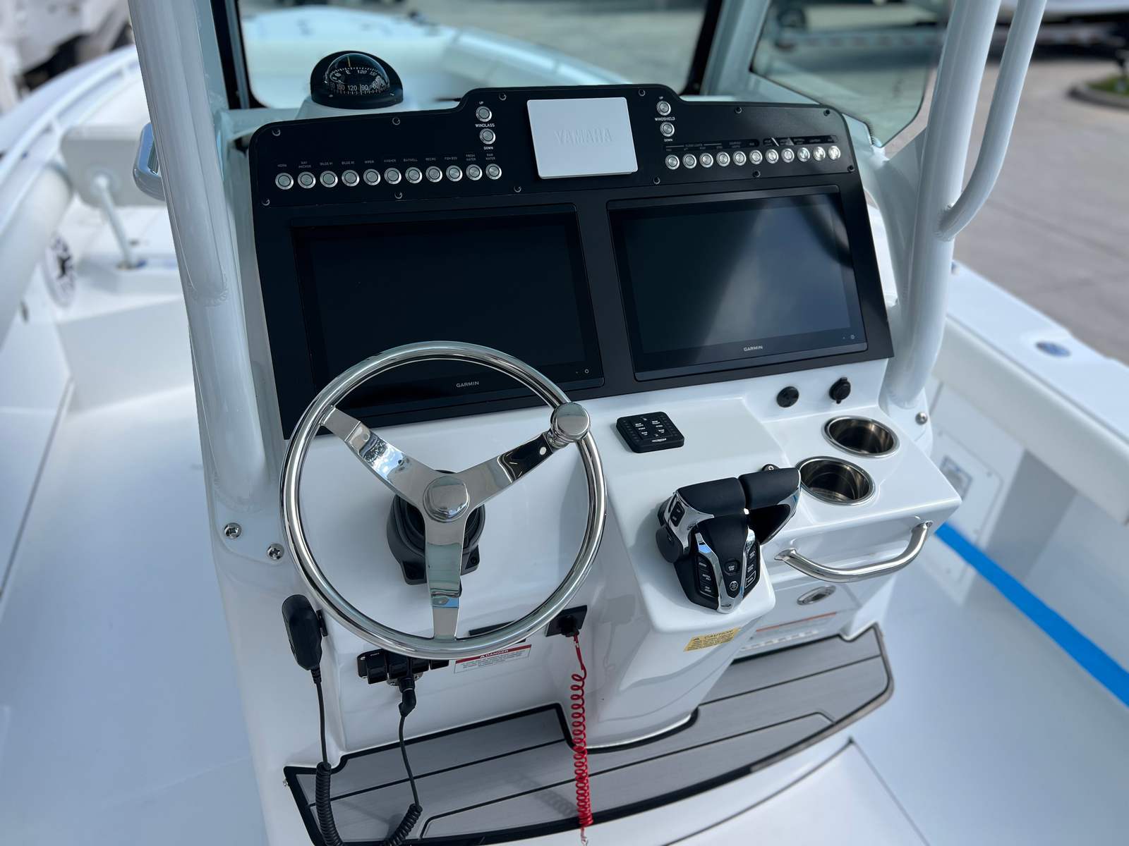 Practicality is at the heart of the Everglades 273 CC’s design. The center console configuration offers excellent visibility and maneuverability, making docking and navigating tight spaces a breeze. The twin Yamaha engines provide not only impressive speed but also redundancy, giving you confidence during longer trips or offshore adventures.Storage is plentiful, with dedicated spaces for gear, tackle, and personal items, ensuring your deck remains uncluttered and organized. The canvas package adds an extra layer of protection, allowing you to shield yourself and your passengers from the elements when needed. The Power Pole makes anchoring quick and effortless, especially in shallow waters where traditional anchors may struggle.Fuel efficiency is another key benefit, thanks to the advanced engineering of the Yamaha F300XSB2 engines. Spend more time enjoying the water and less time worrying about refueling, making every trip more enjoyable and cost-effective.