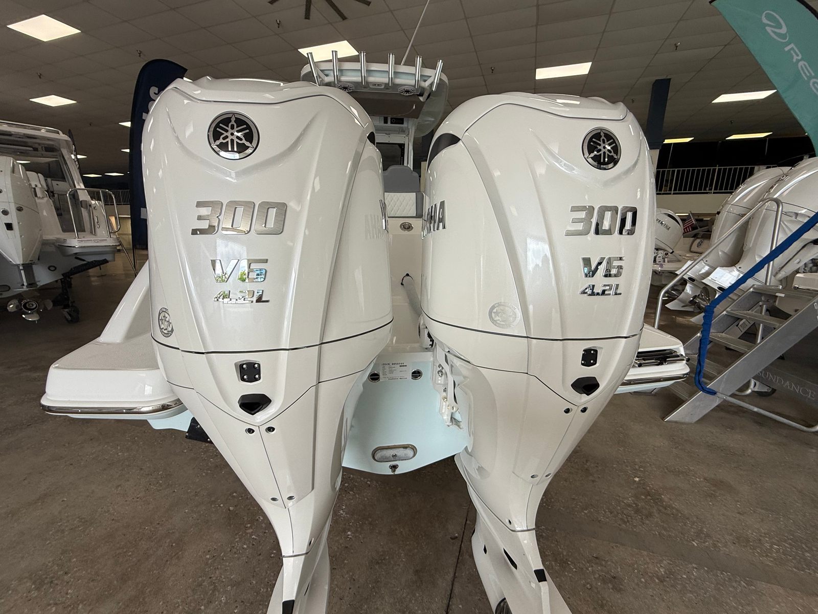 Powering the Everglades 285 CC are twin Yamaha White 300hp engines, delivering a combined 600 horsepower for exhilarating performance and reliable efficiency. These advanced Yamaha engines are equipped with Digital Electric Steering (DES), providing smooth and precise handling whether you are cruising at high speeds or navigating tight docking situations. The inclusion of Auto Pilot and Joystick for Yamaha EX at the main station ensures effortless control, making every journey more enjoyable and less stressful. Whether you are heading offshore for a day of fishing or cruising along the coastline, the Everglades 285 CC offers responsive acceleration, impressive top speeds, and a stable, comfortable ride.